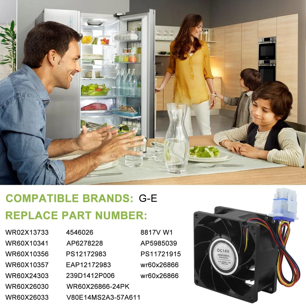 🛠[COMPATIBILITY]:WR60X26866 Refrigerator Evaporator Fan Motor fit for G.E. refrigerator, We have a list of suitable models at the bottom, which you can search by "ctrl+F", If you are not sure whether WR60X26866 is fit for your model, please feel free to contact us before ordering, let us know your refrigerator model, we will check for you 🛠[REPLACES PART]: WR60X26866, WR60X29099, WR02X13733, WR60X10341, WR60X10356, WR60X10357, WR60X24303, WR60X26030, WR60X26033, WR60X26866-24PK, 4546026, AP6278228, PS12172983, EAP12172983, 239D1412P006, V80E14MS2A3-57A611, AP5985039, PS11721915, Please check carefully before buying 🛠[FUNCTION]:WR60X26866 evaporator fan motor circulates air through the fresh food compartment for effective cooling, keeping foods fresh or frozen, WR60X26866 fixes the following symptoms 🛠Abnormal refrigerator temperature 🛠Noise caused by aging of evaporato fan motor 🛠Fridge and Freezer are too warm 🛠[EASY TO INSTALL]:Before installation, please cut off the power supply, and wear gloves to protect your hands, The evaporator fan motor is usually on the back wall of the cold room. After finding the old motor, remove it and then install the new WR60X26866 evaporator fan motor(Take a picture of your device before disassembly to save time on reassembly) 🛠[BUY WITH CONFIDENCE]: The WR60X26866 refrigerator evaporator fan motor supports 180 days return and exchange,We have a professional after-sales service team, if you have any question about this WR60X26866 evaporator fan motor, please feel free to contact us through amazon email or question and answers, we will solve your problem within 24 hours. Don’t hesitate to solve the refrigerator problem easily