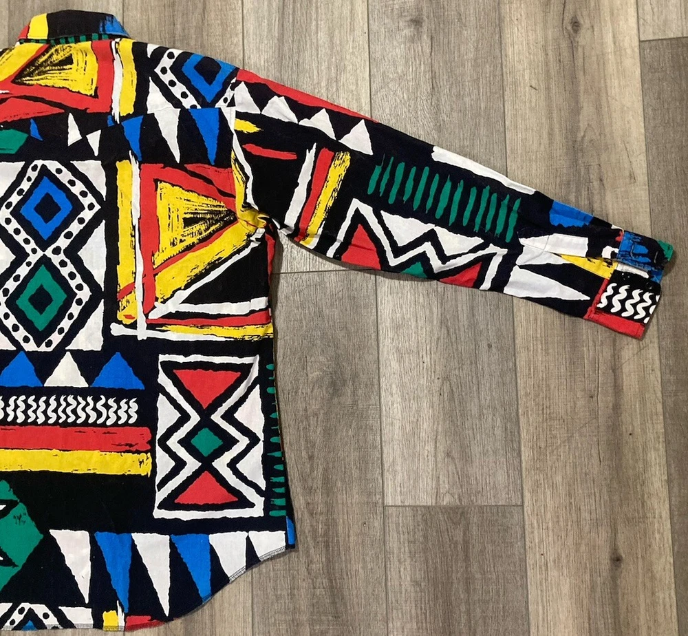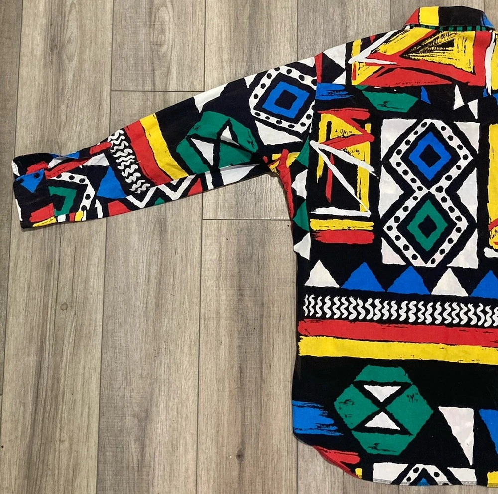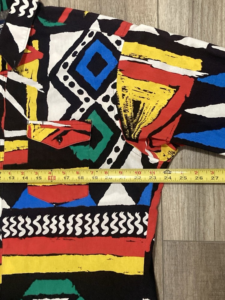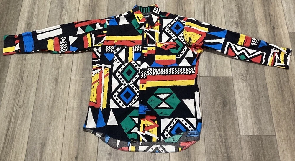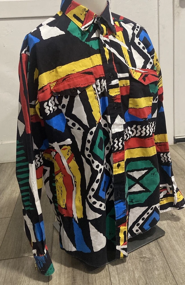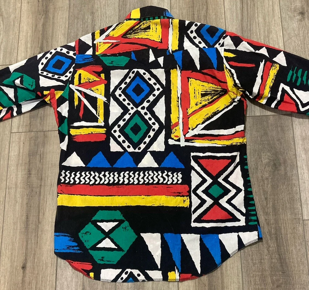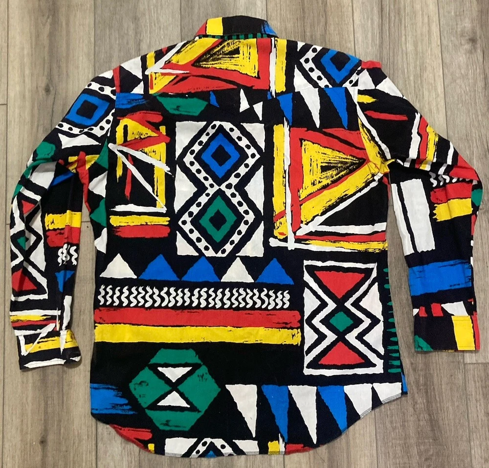 WRANGLER 90’s southwest/cowboy shirt multi-color, button down long sleeves shirt with two front pockets. cowboy cut regular fit men’s size Large 17x35 pre-owned in good condition