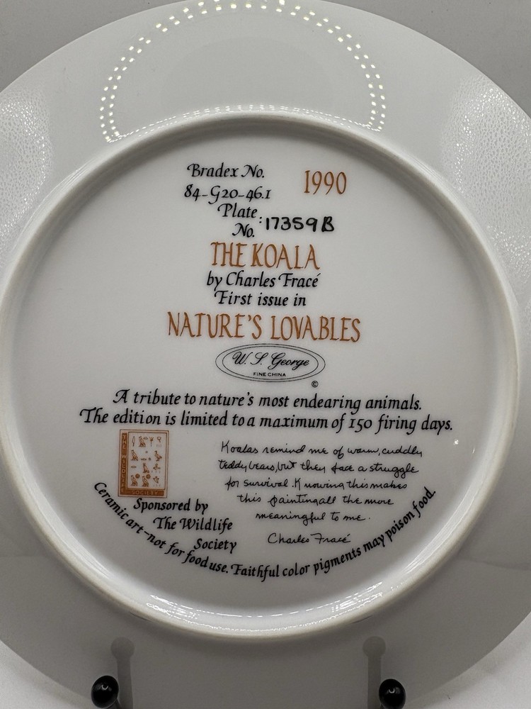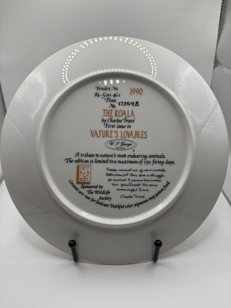 W.S George Fine China: The Koala by Charles Frace, Porcelain Collector Plate