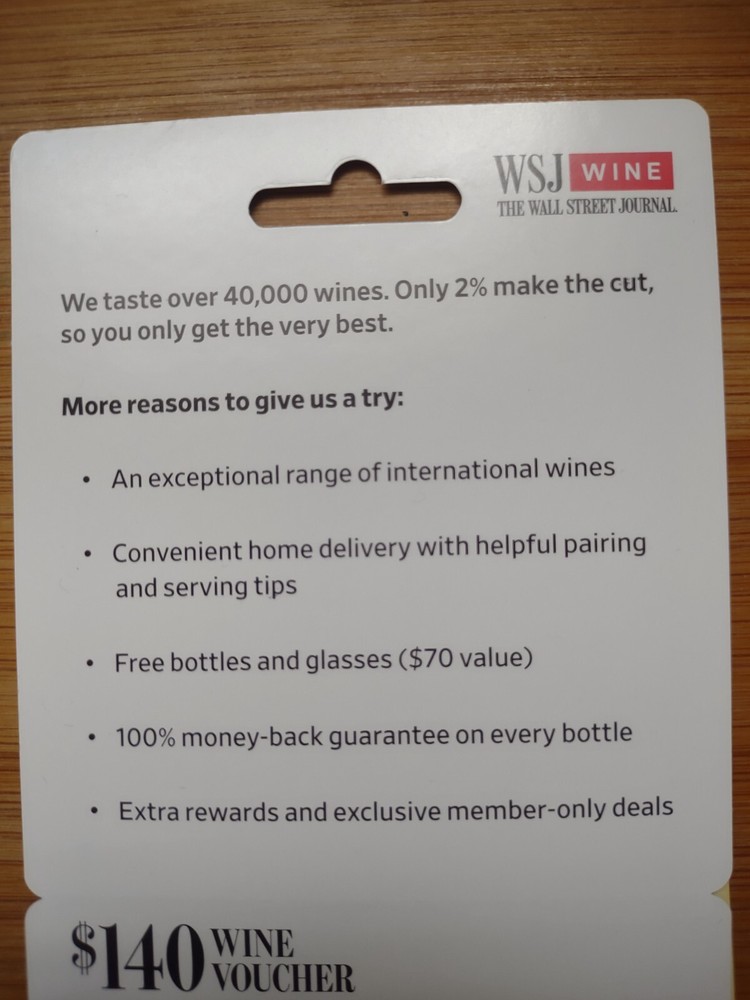 WSJ Wine Voucher $140 Value - Read Description for Details