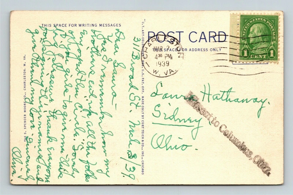 Subject: Cities & Towns Original/Licensed Reprint: Original Postage Condition: Posted Country: USA Region: West Virginia Theme: Cities & Towns City: West Virginia Continent: North America Era: Linen Country/Region of Manufacture: United States Type: Linen Postcard Unit of Sale: Single Unit