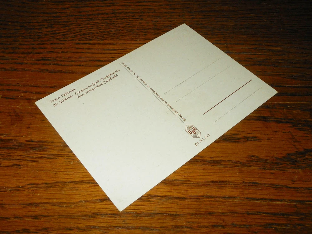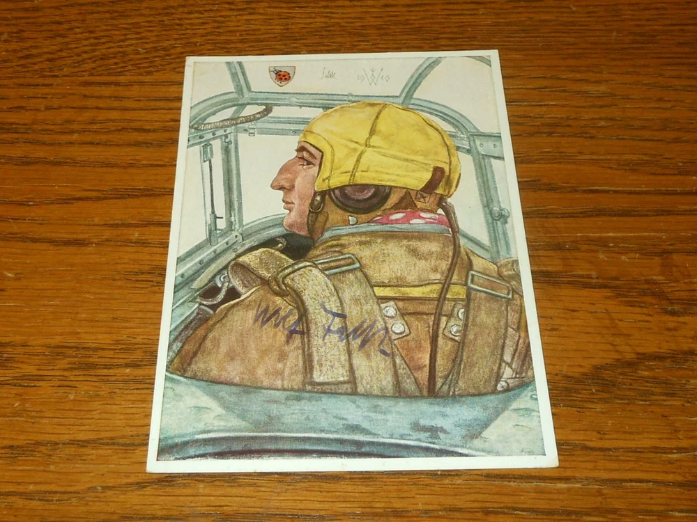 You are bidding on a SUPERB and 100% original WW2 German Luftwaffe autographed postcard photo of Oberst Wolfgang Falck! Unlike most of the autographs you see, this is a WARTIME signed postcard photo postcard (not post-war). From 1 February 1933, he attended the Infantry School at Dresden for officer training. Falck was promoted to the rank of Leutnant on 1 October 1934. He was able continue flying by undertaking an annual six week refresher course on Arado Ar 64 biplane fighters at Schleissheim. In March 1935, Leutnant Falck became Kettenführer (pilot instructor) at the Deutsche Verkehrsfliegerschule at Schleissheim in the new Luftwaffe. On 1 April 1936, Falck was promoted to the rank of Oberleutnant and transferred to JG 132 Richtofen, where he became Staffelkapitän of 5. Staffel, based at Jüterbog-Damm. On 1 July 1938, when III./JG 132 was established, Falck was appointed Staffelkapitän of 8. Staffel, based at Fürstenwalde. The new Gruppe was later redesignated I./ZG 76 and equipped with the then new Bf 110 Zerstörer twin-engine fighter. Falck led 2./ZG 76 during the Polish campaign from its base at Ohlau in Silesia. He gained three victories over Polish aircraft before the unit was relocated to Jever on the German Bight. Here he took part in the air battle with RAF Wellington twin-engine bombers attacking Wilhelmshaven on 18 December 1939. He claimed two of the bombers shot down, although one of his claims was not confirmed, but force-landed on Wangerooge after return fire from the gunners of the bombers damaged his engines. On 19 February 1940, Hauptmann Falck was appointed Gruppenkommandeur of I./ZG 1, based at Düsseldorf. The Gruppe was relocated to Barth on the Baltic coast at the beginning of April. On 9 April, Falck led the unit in the invasion of Denmark. He recorded his seventh, and final, victory when he shot down a Danish Fokker C V recce plane (R-49) belonging to the 5. eskadrille that was taking off from Vaerlöse airfield. It was while he was based at Aalborg in the north of Denmark that Falck, following the unmolested bombing of the airfield by RAF bombers in the pre-dawn hours, prepared a comprehensive report on the theories of night interception. I./ZG 1 participated in the battle for France and, with that campaign successfully concluded, against the RAF from a base near Le Havre. However General Kesselring ordered Falck to withdraw the Gruppe to Düsseldorf and reform the unit in the night fighter role. . Made of paper, this postcard photo is in EXCELLENT condition! Featuring an artistic image of Wolfgang Falck, it is signed in ink at the bottom. Some marks, wear, and creases due to the age on the reverse, but nothing that detracts. 100% original, it would look EXCELLENT framed! A PERFECT addition to any collection or display! Please email me if you need additional photos or information. ------------------- PAYMENT ----------------- Payment should be made within 7 business days at the end of the auction unless buyer contacts me for other arrangements. I accept all forms of payment. ------------------- SHIPPING ----------------- My goal is to ship within 7 days from auction end. However, depending on circumstances, it may take up to an additional 1 week from receipt of confirmed payment. If you need it shipped sooner, please let me know and I will do our best to accommodate. ------------------- TERMS OF SALE ----------------- Most of my items are vintage, and as such are AS-IS, so you must therefore expect a degree of wear due to age and/or usage. I will describe each auction to the best of my knowledge and take as many photos necessary to ensure you are pleased upon receiving your item. All sales are final, so please make sure your questions are answered to your satisfaction before you purchase. ------------------- ABOUT ME ----------------- Although my passion is the Me109, I do offer many other German Aircraft (Fw190, Me262, etc.), as well as USAF and Japanese items. Occasionally I do offer many non-vintage items such as prints and art relating to the time period. As a private collector myself, I am constantly on the lookout for historical memorabilia, authentic photographs, artwork or anything unique relating to military aircraft. ------------------- COPYRIGHT ----------------- All pictures and descriptions used in my auctions under COPYRIGHT and I forbid the use of these photos and information in any manner such as paper or electronic (internet) publications or otherwise. Use is solely based on my authorization only. Powered by SixBit's eCommerce Solution