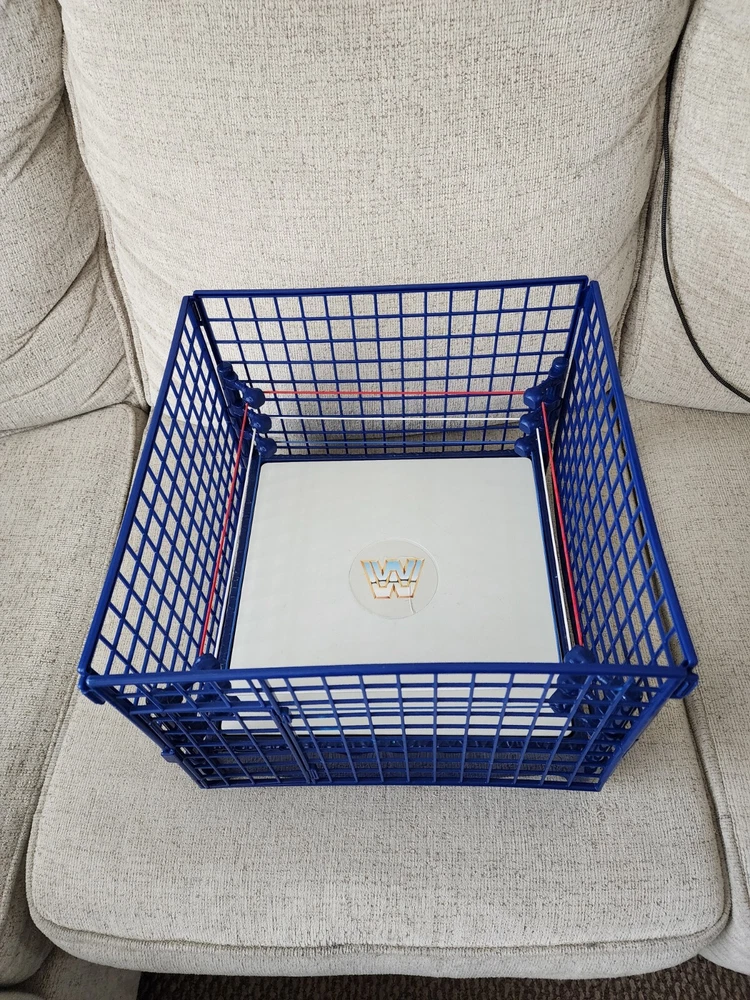 WWE 2010 Hall Of Fame Classic Blue Steel Cage WWF Wrestling Ring In great shape. Please note that ring will be disassembled for shipping. So please keep in mind you'll have to assemble it back. Box not included.