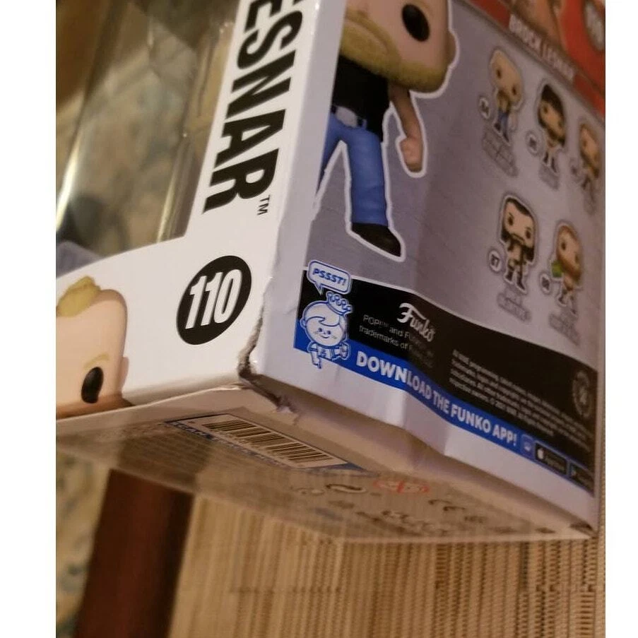 WWE Brock Lesnar Amazon exclusive funko pop. Has box damage as shown in photos. No damage to funko pop itself. Will ship fast and with care!