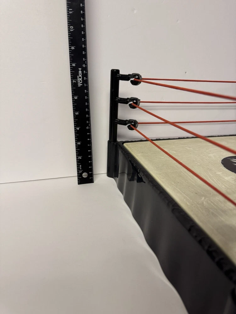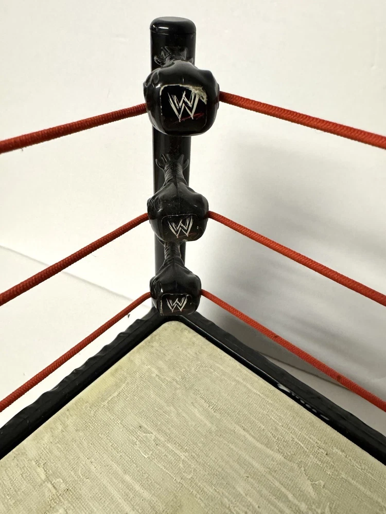 This WWE Raw and Smackdown Wrestling Ring is a must-have for any fan of the franchise. Made by Mattel, this ring is compatible with action figures and features a spring loaded mat for added excitement. The ring is made of durable plastic and is perfect for recreating your favorite WWE moments. Whether you're a collector or just looking for a fun toy to play with, this wrestling ring is a great addition to your WWE collection.