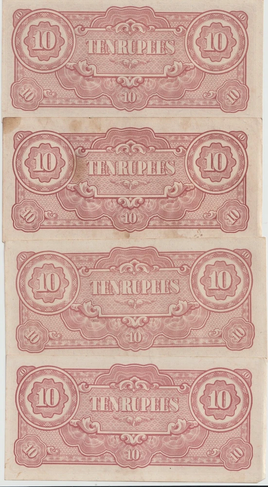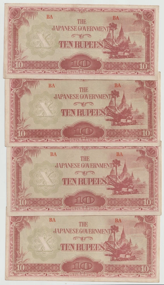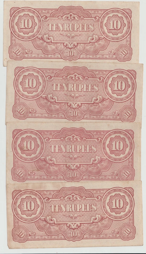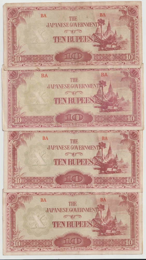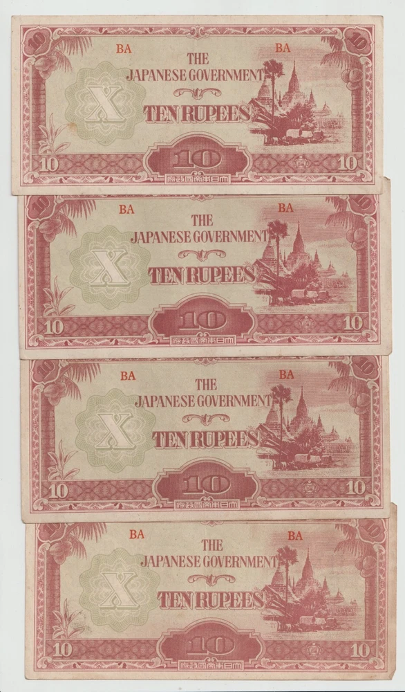 L@@K At My Other FREE SHIPPING Auctions!!! CLICK HERE >>>> https://www.ebay.com/str/Arcane-Treasures <<<< CLICK HERE Great WWII Items At Only $1.99 Per Note!!!!! This Is One Lot Thats Not In Many Peoples War History Collection. A Nice Lot That Will Complement Any Collection. Up For Sale Is A Lot Four (4) World War 2 Japanese Invasion Occupation Government Issued 10 Rupee Currency From Burma 1944 . Good Condition, Not Hole Punched Or Counterstamped Cancelled!!!! Beginning with the capture of the Philippines, the Japanese military confiscated all hard currency, both on a federal and individual level, replacing it with locally printed notes bearing a proclamation of military issue. All notes bore the name of the Imperial Japanese government. Japanese troops were ordered to destroy bank records and any remaining currency prior to capitulation. The Japanese invaded Burma in January 1942. They conquered Mandalay on 21 May 1942, forcing the British to retreat into India. The Japanese held Burma until the second Allied campaign of 1944, although an official surrender did not take place until August 1945. In 1942, the Japanese issued paper sculpture currency of 1, 5, and 10 cents and Re. 1⁄4, Re. 1⁄2, Re. 1/-, Rs. 5/-, and Rs. 10/-. Like most Japanese colonial currency from this period, a letter code was used on the notes. The first or top letter “B” indicates the note was printed and issued for Burma. The second letter or letters indicate the block (or printing batch) of the note, there are single letter blocks and double letter blocks for Burma, with the latter two letter blocks being identified by a hyphen separating the letter "B" from the block letters. In 1943, the Japanese commuted the sentence of Dr Ba Maw, an outspoken advocate for Burmese self-rule, and installed him as the head of the puppet government. From 1943 onward the Japanese issued paper sculpture currency of Re. 1/-, Rs. 5/-, and Rs. 10/- with a Rs. 100 note/- in 1944. The Japanese characters in the oblong box at the bottom of each note read “Government of Great Imperial Japan” and the contents of the seal comprise the Japanese symbol for the Minister of Finance. When the war ended all of these notes became obsolete, punch holes or counterstamped were made to indicate that the note had been cancelled/traded-in for newly monetized currency and therefore were demonetized. When WWII ended, most of these notes were destroyed or cancelled, but there were still a few uncancelled notes left. I Am Not A Professional Collector, So I Dont Know Condition Or Grades. Please Refer To Pictures Provided, For What Is Pictured Is A Good Example Of Of The Notes You'll Receive. Cold War Items Are Increasing In Popularity Rapidly!!!! FREE DOMESTIC SHIPPING!!!!!!! Very Low International Shipping Rate! L@@K At My Other FREE SHIPPING Auctions!!! CLICK HERE >>>> https://www.ebay.com/str/Arcane-Treasures <<<< CLICK HERE International Buyers: Please note that my country charges the international first class shipping rate to send 1oz-8oz, so depending on weight I can combine some items without an increase to the shipping cost. As you can see I try to cut the shipping cost for you as much as possible. If you win multiple items let me know so I can send a revised invoice . This store uses Ebays Automatic Unpaid Item Assistant that will send out payment reminders that it will call a case after 4 days of nonpayment saying to pay within 4 days after that. So as long as payment comes in before the 8th day all is good like nothing happened at all. Ebay has this store setup to leave positive feedback automatically once it is left for the seller. View more great items