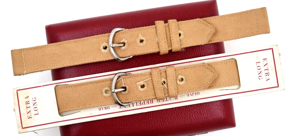 This is a lot of 2 original WWII military watch straps. They are tan, extra-long size. One is still on the retail card. The other strap is also un-used, but the card is now gone. The ends are 16mm wide. These are ready to display, or put on your period watch. Buyer pays shipping, $4 in USA. Thank you.