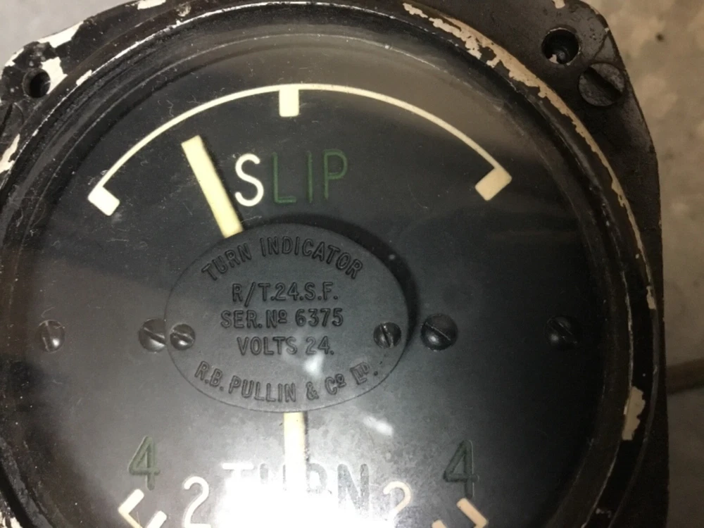 British used two main types of turn indicators, this is the less often seen version as what fits a standard 3 and 1/8” instrument Mount, unlike their other version. As a result this instrument was most often seen in lend-lease US equipment operated but RAF or RCAF, RAAF, RNZAF, etc. the Lockheed Hudson, Lockheed Ventura, Beech 18, AT-6, were frequently equipped with this instrument when operated by RAF. It’s a 24V electric DC gyro that is actually two instruments in one. The top needle indicates coordinated turn, and the bottom indicates rate of turn. Both comprise one portion of blind flight equipment for aircraft. Gyro has been untested but has intact wiring. Clean face, good glass, clear markings, visible inked acceptance stamp on rear of case and ghost markings on face (see photos) This instrument was part of a retired RAF instrument collector and in his private collection last 30+ years. I will pack it carefully but I would suggest insuring it due to its value. -9