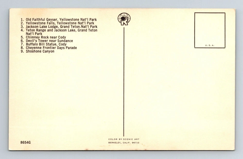WY-Wyoming, Scenic Greetings, Map View, Landmarks, Vintage Postcard