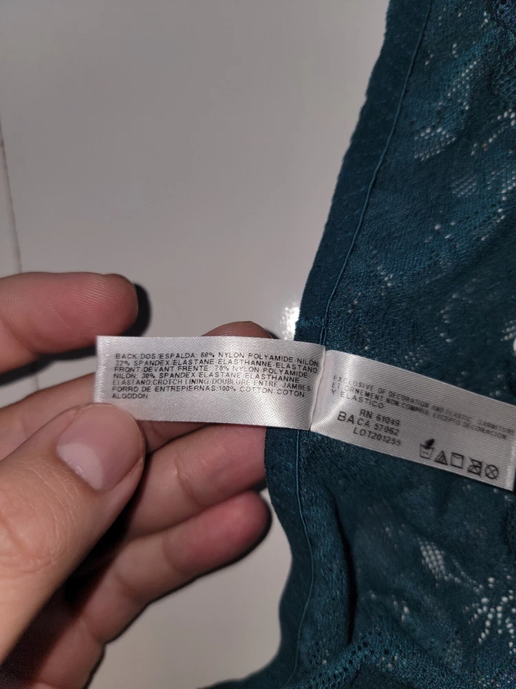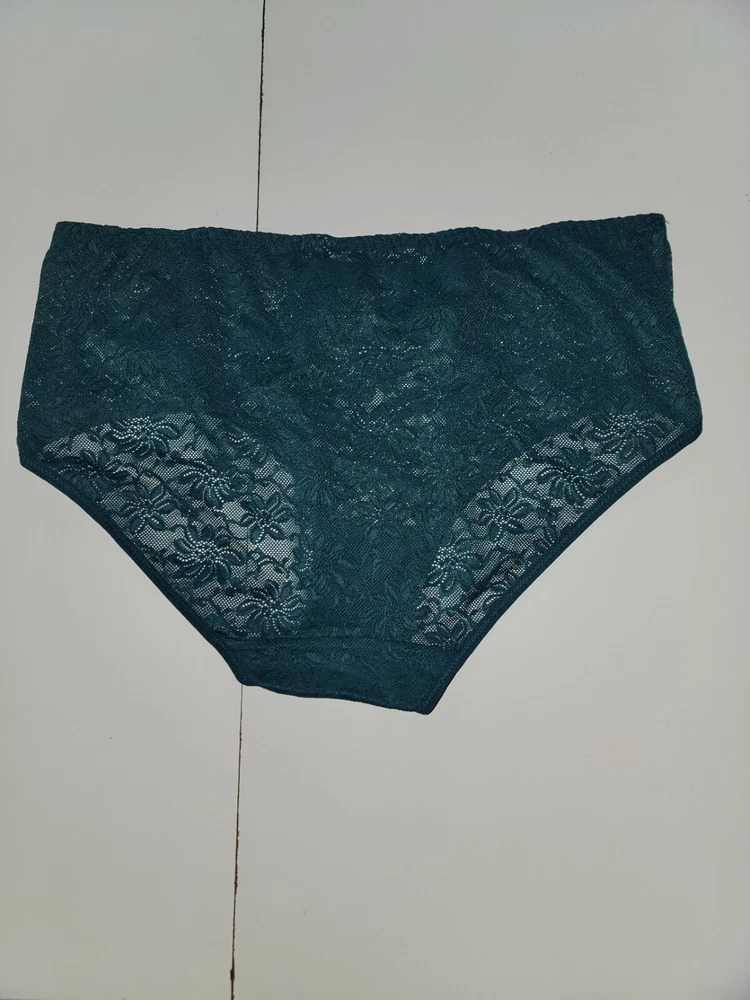 This is a dark teal Wacoal hi-cut brief panty made of stretch lace with floral lace pattern and embroidered scalloped accents. It is a glamorous and elegant underwear piece for women, featuring a high-rise design, high leg cut, and breathable nylon/spandex material. The semi-transparent lace fabric adds a romantic and classic touch to this stylish lingerie.
