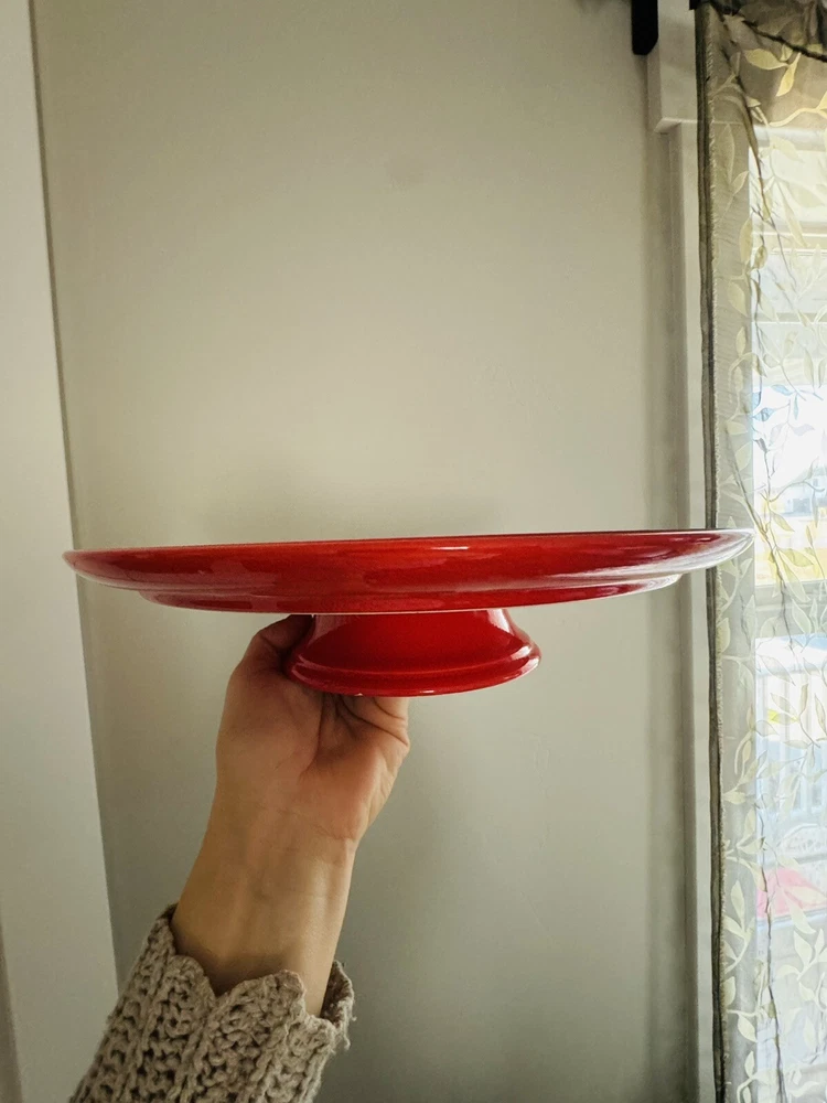 Waechtersbach Red Christmas Tree 12 3/8” Cake Stand with Pedestal SALE 60% OFF. Condition is Used. Shipped with USPS Ground Advantage.