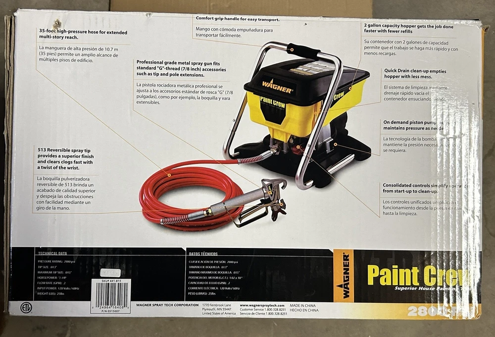 The Wagner Paint Crew Model 770 Electric Airless Paint Sprayer is a versatile tool suitable for exterior painting projects. With a 2-gallon cup/hopper capacity and a piston pump, this sprayer can efficiently dispense paint through a 517 spray tip size. The 4-finger trigger configuration allows for easy control, while the adjustable pattern control feature ensures a smooth finish. The included hose and cart frame make it convenient to use and transport, making it a reliable choice for both professionals and DIY enthusiasts. Additionally, the manufacturer warranty of 1 year provides peace of mind for any purchases.