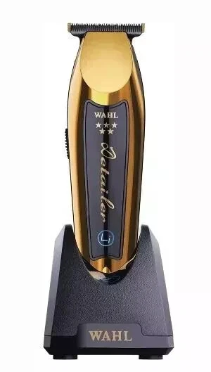 The T-wide blade has titanium and DLC coatings so blades stay cooler, are corrosion resistant, and are extremely strong The adjustable T-wide blade (#2215-700) can be zero-gapped for extremely close trimming It uses a powerful, full-sized clipper motor to cut smoothly through all hair types It operates for 100+ minutes and features a lithium-ion battery with smart LED charging It comes with a stylish, weighted, space-saving, charge stand The Ultimate Cordless Trimmer! (Model 08171-700) The T-wide blade has titanium and DLC coatings so that blades stay cooler, are corrosion resistant, and are extremely strong, delivering consistently high performance. The cordless Detailer® Li Gold has an adjustable T-wide blade (#2215-700) for extremely close trimming. It operates for 100+ minutes on a full charge and comes with a weighted, space-saving, charge stand. It features a lithium-ion battery with smart LED charging. This American-made professional hair trimmer uses a powerful, full-sized clipper motor to cut smoothly through all hair types. Blades can be zero-gapped using the Pro-Set tool and is ideal for lining, trimming, and facial hair detailing and design. The cord/cordless hair trimmer measures 5.75" in length, weighs 6.6 ounces and includes 3 trimming guides (1/16", 1/8", 3/16"), power cord, charge stand, pre-shave brush, cleaning brush, oil, red blade guard, pro-set tool and operating instructions. PLEASE NOTE: Due to continuous improvement, the product appearance may slightly vary from the product images on this listing. Made in USA. In The Box Professional Cord/Cordless Trimmer 3 T-Wide Trimming Guides (1/16", 1/8", 3/16") Charge Stand Pro-Set Tool Cleaning Brush Power Supply Operating Instructions Red Blade Guard Note: Oil not available in the package because of leakage issue