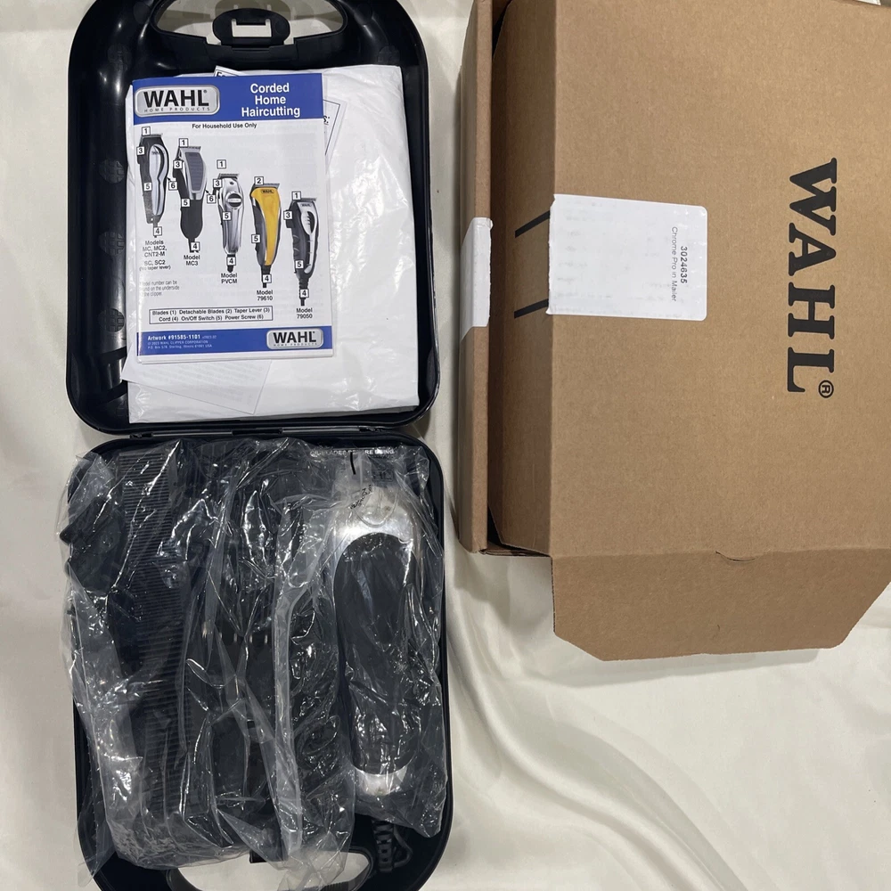 Experience the precision and power of the Wahl Chrome Pro Corded Clipper Kit, designed for both hair cutting and beard trimming. This robust trimmer is an essential tool for personal grooming, featuring a sleek design and durable construction that's trusted by professionals and enthusiasts alike. The kit includes multiple attachment options to cater to a variety of styling needs, ensuring your hair and beard maintenance is both efficient and tailored to your preferences. With the Wahl Chrome Pro, you can achieve a sharp look at home and keep your style on point.