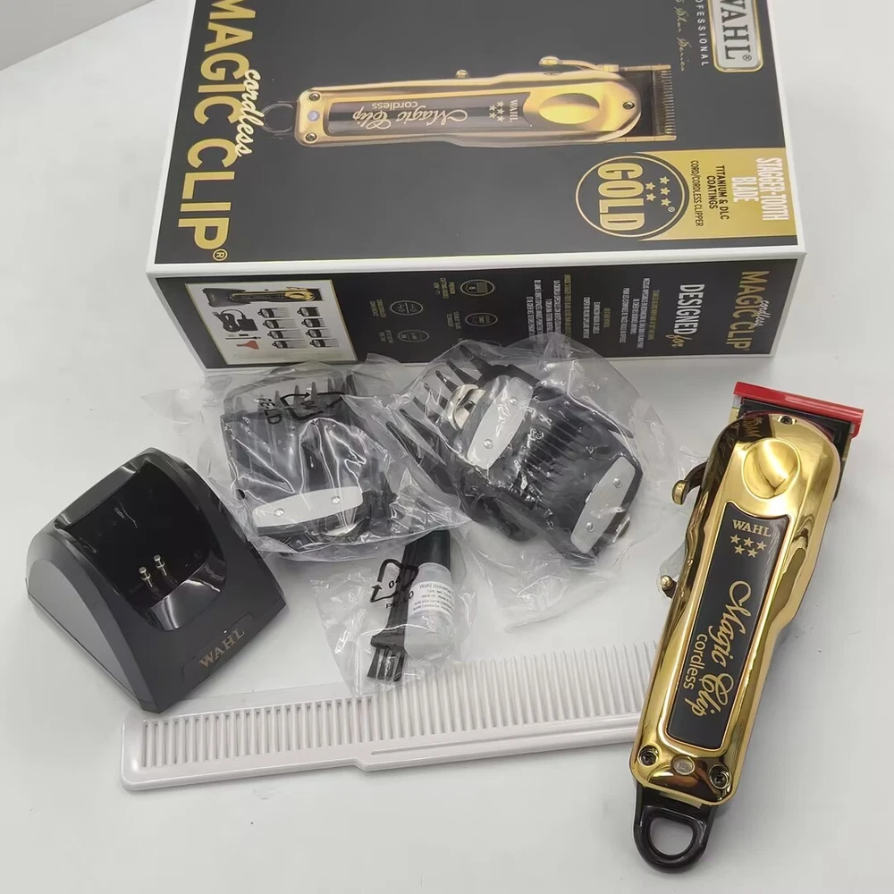 Product Description Features: 1-STYLISH AND FUNCTIONAL: The Limited Edition Black & Gold Cordless Magic Clip is the ultimate cordless clipper. It features high precision zero-overlap 2161 blades that offer superior speed and ease of use, a convenient taper lever for easy fading and blending, and a lithium ion battery for a 90+ minute run time per charge. Cord/cordless cutting capability. 2-ACCESSORIES INCLUDED: For your convenience, the 5-Star Limited Edition Black & Gold Cordless Magic Clip comes with all accessories required for use. PRODUCT SPECIFICATIONS: The 5-Star Limited Edition Black & Gold Cordless Magic Clip (#8148-700) measures 6.25” long and weighs 10 oz. Operates at 120 volts/60 hertz Package Include: As shown in the figure Return policy About us Contact us Shipping If you need return, let us know the detailed problem and send us some pictures for confirmation. Then get an address for return or refund. 1.Customers may return an item for refund or exchange within 30 days after the item is received. Items must be returned in their original shipping and item packaging and should not be used. 2.We only accept our own parts without any broken. 3.Customers are responsible to the shipping back cost if you buy our item by mistake or change your mind. 4.Refund will only send once we receive the part from you without any problem.thanks 5.If a defective received (seldom happened), we will refund you or ship a replacement to you according to our inventory. (Not included the postage). 1. We value our customers tremendously. We are learning and improving our service better and better, and your satisfaction is the first thing that we pursue. 2. If any problem occurs, please contact with us at the first time. 3. Then we will try our best to solve the problem and make you pleased 4. And if you are pleased with this transaction, please don’t hesitate to leave a POSITIVE FEEDBACK and FIVE STARS on all of the Detail Seller Ratings. We will do the same for you. If have any problem, Please don't give negative feedback, Please contact us by message, we will do our best to service you .Thanks very much and have a good day! 1. Your order will be usually shipped out on the same day or the next day when you paid for it. 2. Shipping from the USA. 3. Handling time: 2 business day and 3 business day on weekend (Orders are not processed on holidays).Item is shipped to ebay address. Please leaving correct address can minimize delay. Return policy If you need return, let us know the detailed problem and send us some pictures for confirmation. Then get an address for return or refund. 1.Customers may return an item for refund or exchange within 30 days after the item is received. Items must be returned in their original shipping and item packaging and should not be used. 2.We only accept our own parts without any broken. 3.Customers are responsible to the shipping back cost if you buy our item by mistake or change your mind. 4.Refund will only send once we receive the part from you without any problem.thanks 5.If a defective received (seldom happened), we will refund you or ship a replacement to you according to our inventory. (Not included the postage). About us 1. We value our customers tremendously. We are learning and improving our service better and better, and your satisfaction is the first thing that we pursue. 2. If any problem occurs, please contact with us at the first time. 3. Then we will try our best to solve the problem and make you pleased 4. And if you are pleased with this transaction, please don’t hesitate to leave a POSITIVE FEEDBACK and FIVE STARS on all of the Detail Seller Ratings. We will do the same for you. Contact us If have any problem, Please don't give negative feedback, Please contact us by message, we will do our best to service you .Thanks very much and have a good day! Shipping 1. Your order will be usually shipped out on the same day or the next day when you paid for it. 2. Shipping from the USA. 3. Handling time: 2 business day and 3 business day on weekend (Orders are not processed on holidays).Item is shipped to ebay address. Please leaving correct address can minimize delay. powered by