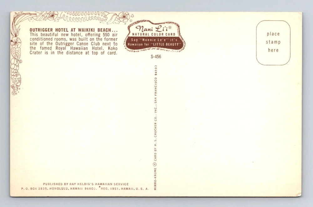 Region: Hawaii Postage Condition: Unposted Type: Printed (Lithograph) City: Waikiki Beach Theme: Cities & Towns Era: Vintage Original/Licensed Reprint: Original Country: USA Unit of Sale: Single Unit Material: Paper Country/Region of Manufacture: Unknown Size: Standard (5.5 x 3.5 in) Subject: Cities & Towns