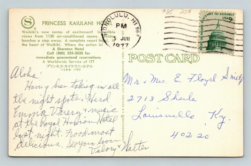 Waikiki Beach HI-Hawaii, Princess Kaiulani Hotel, c1977 Vintage Postcard