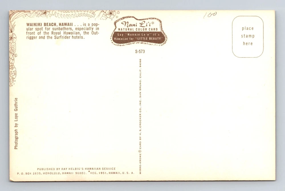 Subject: Cities & Towns Postage Condition: Unposted Type: Printed (Lithograph) Country/Region of Manufacture: Unknown Country: USA Region: Hawaii Theme: Cities & Towns Original/Licensed Reprint: Original Unit of Sale: Single Unit City: Waikiki Beach Era: Vintage