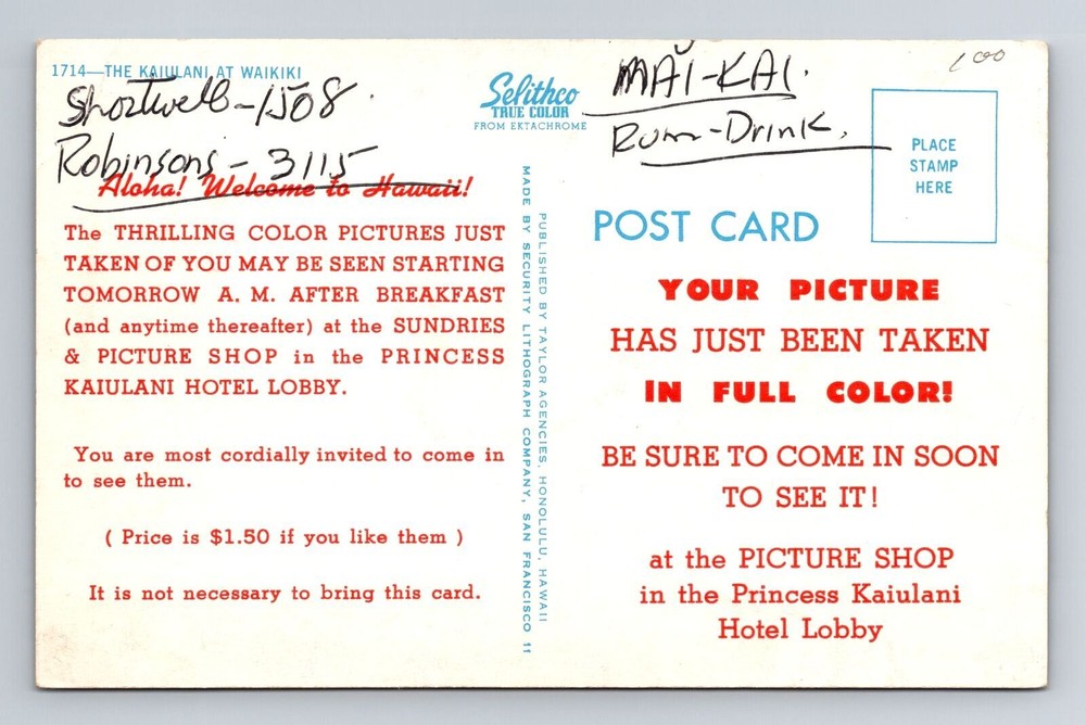 Waikiki HI Hawaii The Kaiulani Antique Vintage Collectible Postcard