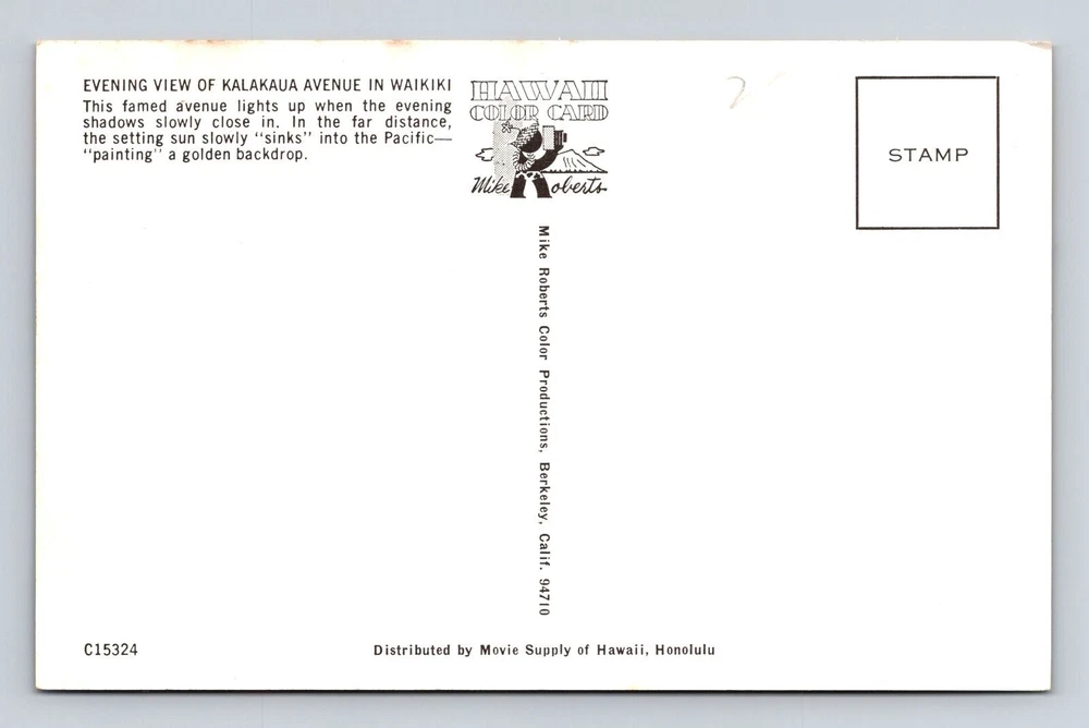 Waikiki HI-Hawaii, Aerial Evening Of Kalakaua Avenue, Antique, Vintage Postcard