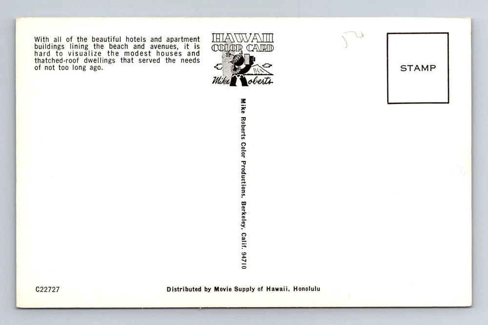 City: Waikiki Original/Licensed Reprint: Original Postage Condition: Unposted Era: Vintage Country/Region of Manufacture: Unknown Subject: Cities & Towns Theme: Cities & Towns Material: Paper Region: Hawaii Size: Standard (5.5 x 3.5 in) Unit of Sale: Single Unit Country: USA Type: Printed (Lithograph)