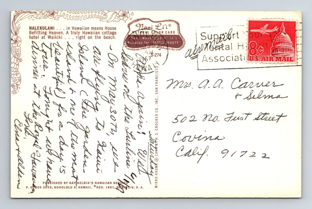 Waikiki HI-Hawaii, Halekulani, Swimming Beach, Vintage Postcard