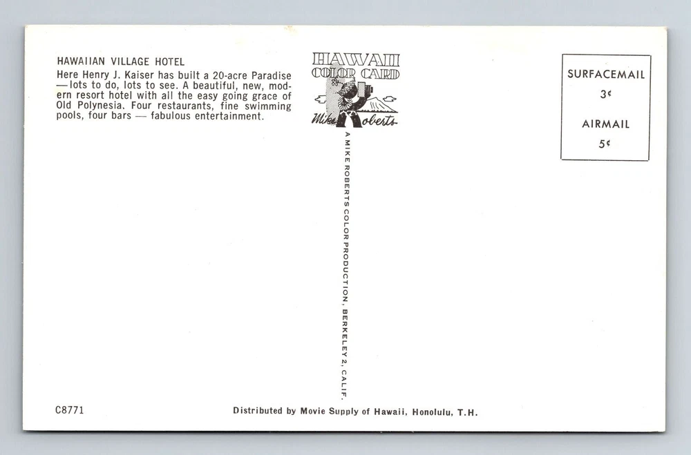 Waikiki HI-Hawaii, Hawaiian Village Hotel, Vintage Postcard