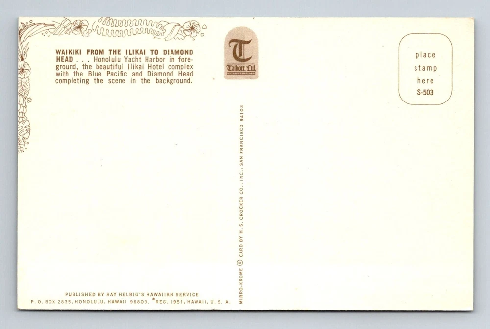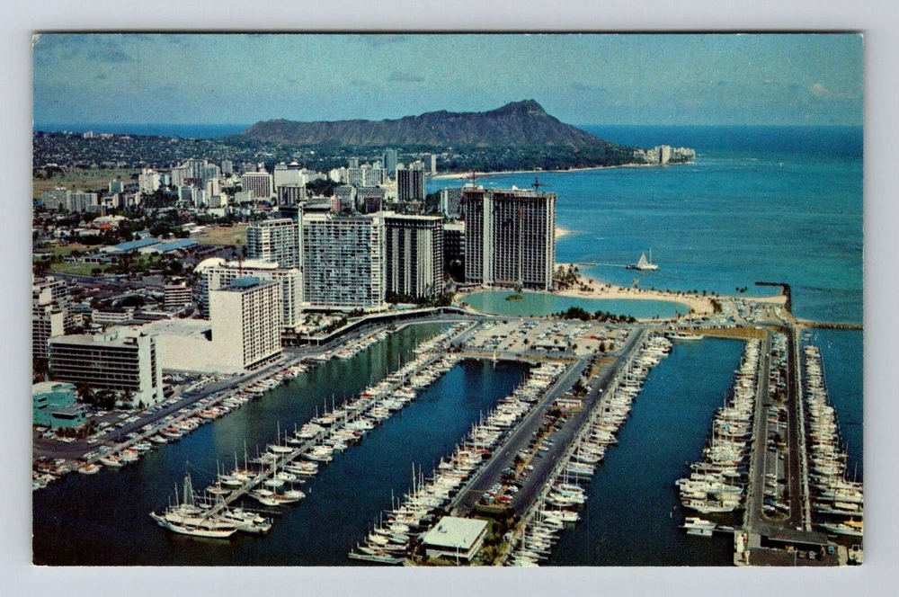 Waikiki HI-Hawaii, Honolulu Yacht Harbor, Ilikai Hotel, Vintage Postcard