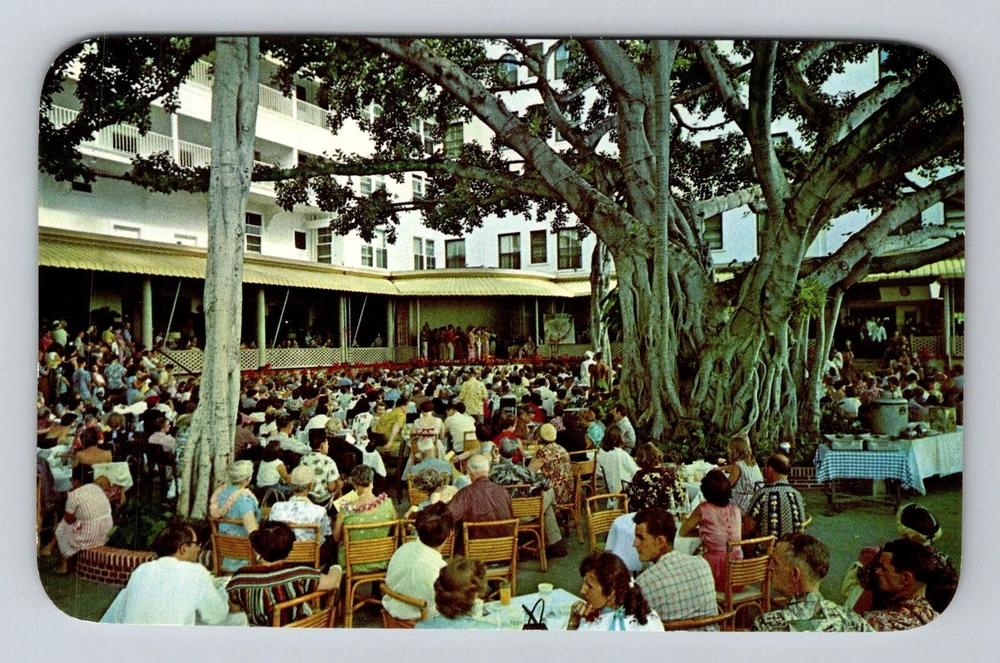 Waikiki HI-Hawaii, Moana Hotel Banyan Court, Advertising, Vintage Postcard