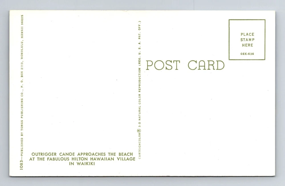Original/Licensed Reprint: Original Country: USA Material: Paper Era: Vintage City: Waikiki Subject: Cities & Towns Country/Region of Manufacture: Unknown Theme: Cities & Towns Region: Hawaii Size: Standard (5.5 x 3.5 in) Unit of Sale: Single Unit Postage Condition: Unposted Type: Printed (Lithograph)