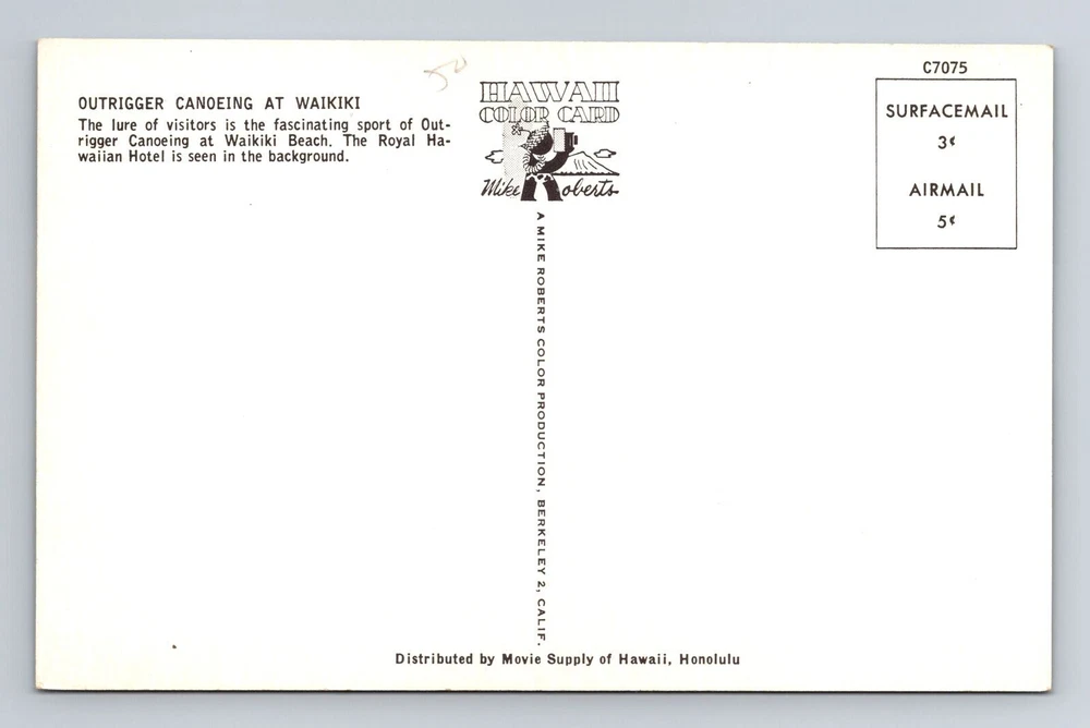 Waikiki HI-Hawaii, Outrigger Canoeing, Vintage Postcard