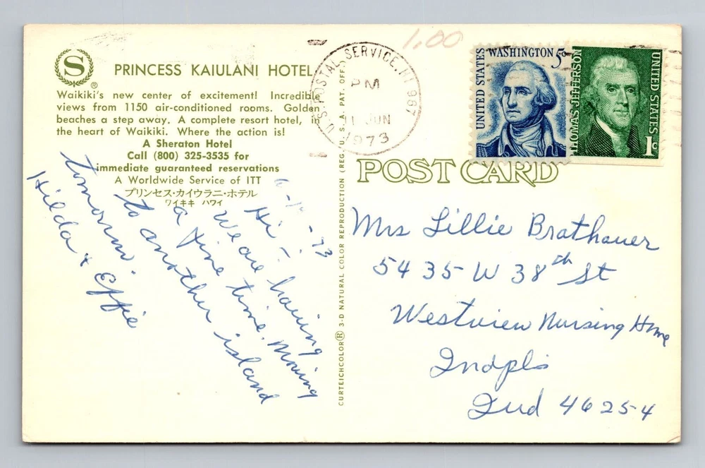 Waikiki HI-Hawaii, Princess Kaiulani Hotel Advertising, Vintage c1973 Postcard