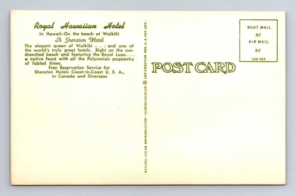 Waikiki HI-Hawaii, Royal Hawaiian Hotel, recuerdo, postal vintage