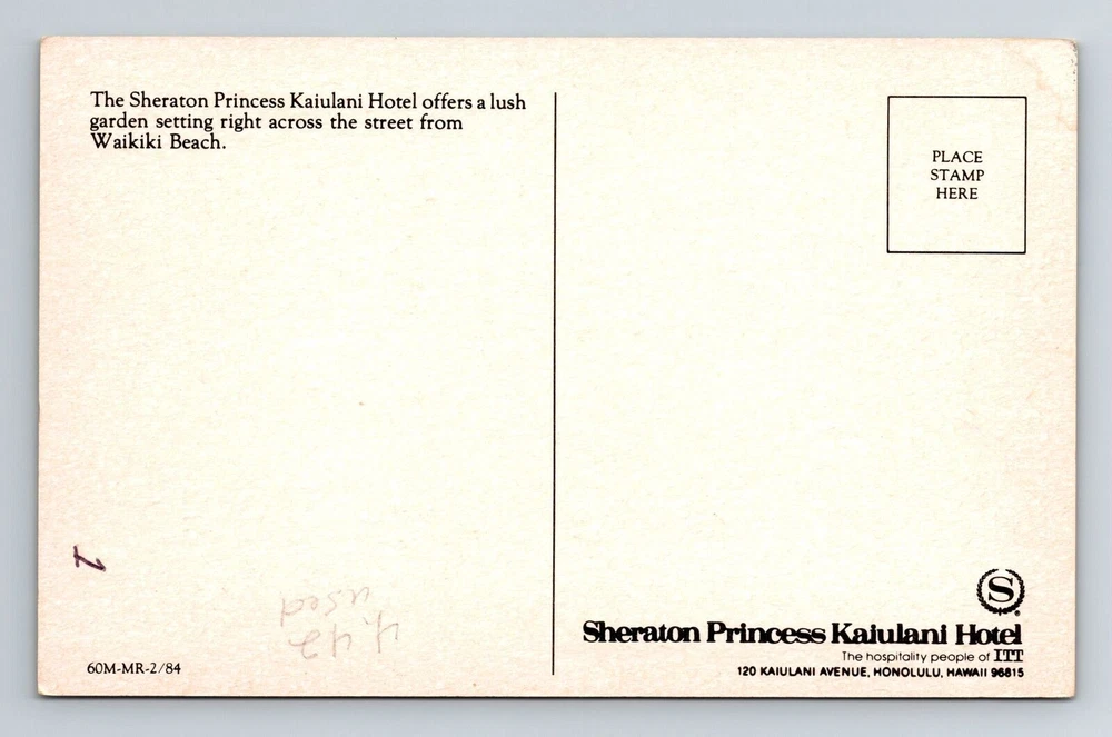 Waikiki HI-Hawaii, Sheraton Princess Kaiulani Hotel, Vintage Postcard