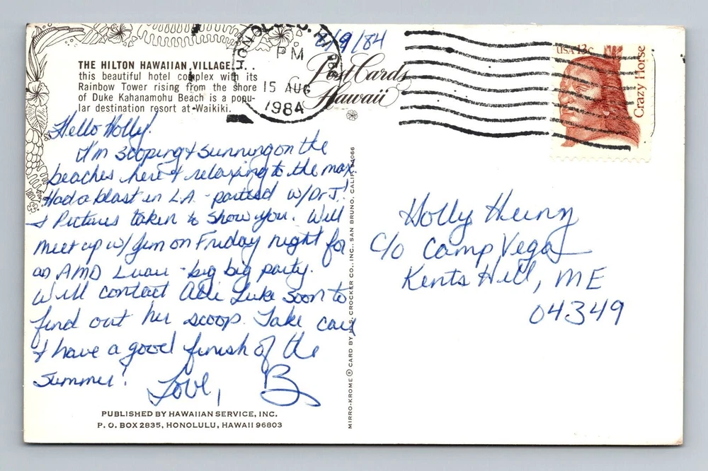 Waikiki HI-Hawaii, The Hilton Hawaiian Village, Vintage c1984 Postcard