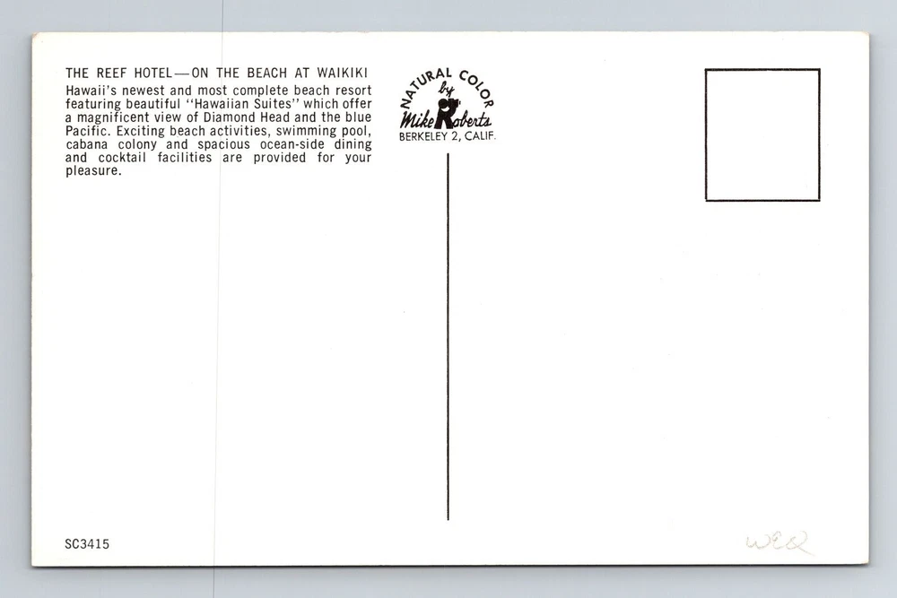 Waikiki HI-Hawaii, The Reef Hotel, On The Beach, Vintage Postcard
