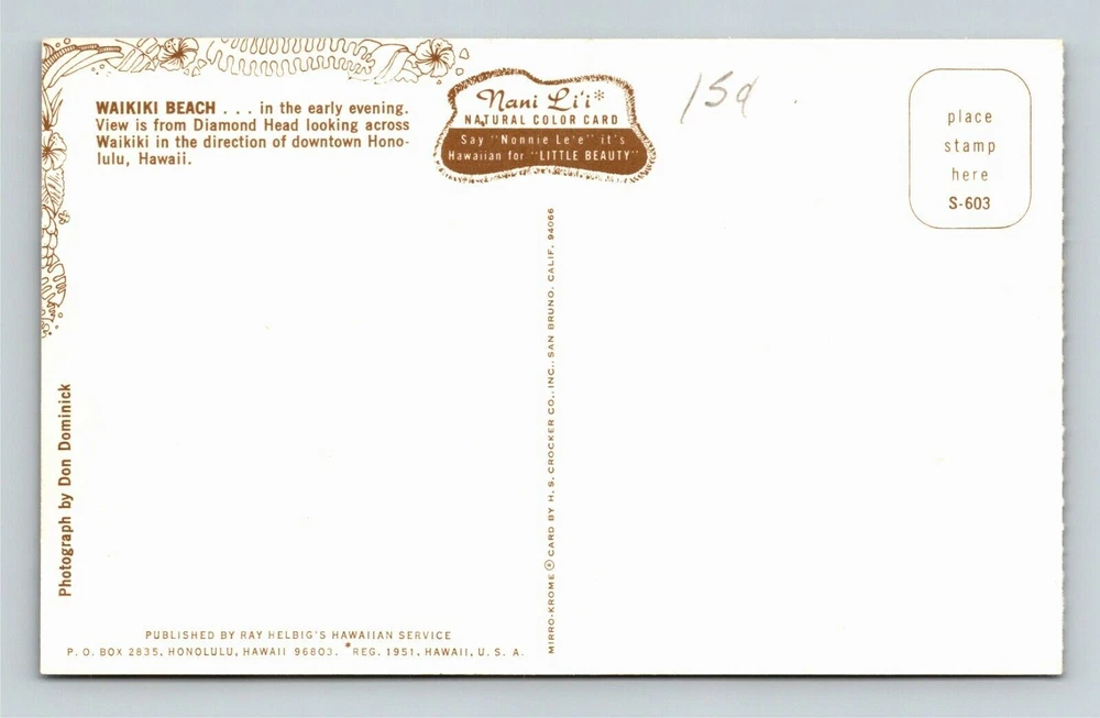 Waikiki, HI-Hawaii, Waikiki Beach, Downtown Honolulu, Vintage Postcard
