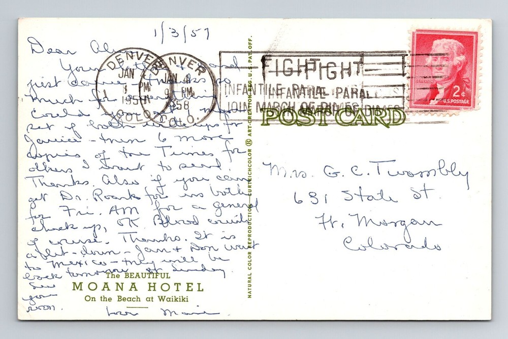 Waikiki Moana Hotel Aerial Beach View Vintage Hawaii Postcard