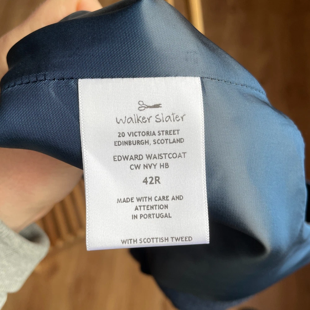 Walker Slater Edward Tweed Wool Waistcoat Excellent pre-owned condition Size UK 42R Measures: Shoulders 33 cm/ 12.9 in Pit to pit 54 cm/ 21.2 in Length in back 60 cm/ 23.6 in All items are measured laying flat