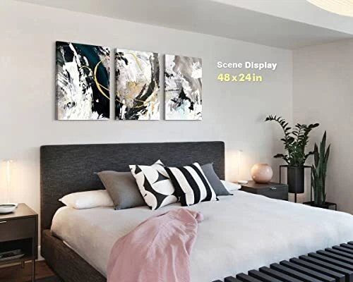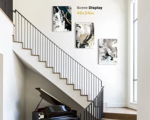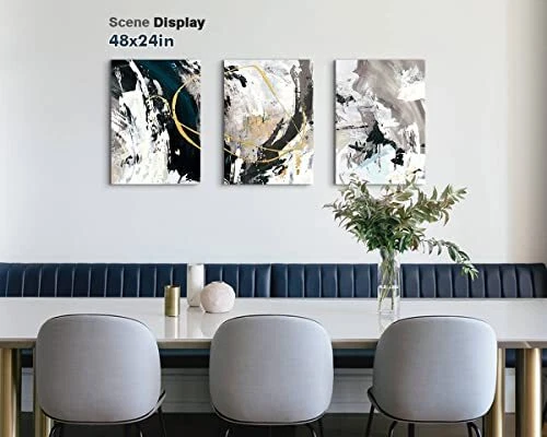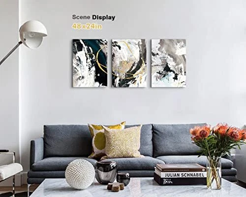 30 Days Return Policy Fast Delivery Trusted seller Wall Art Home Decorations for Living Room Abstract Canvas Wall Paintings Graffiti Black And White Pictures for Wall Decor Bedroom Kitchen Dining Room Office Wall Decorations 48x24in Product Description ABSTRACT WALL ART SIZE: 16’’W*24’’H*3panels, overall size 48’’W*24’’H. EASY TO HANG: This black and white wall art combines HD canvas prints with handmade texture painting. It also comes with hanging hooks and nails, ready to hang. EXCLUSIVE DESIGN: This canvas wall art is an exclusive design created by our artist. Original and unique design just for you. BEAUTIFUL WALL ART: The smooth and harmonious transition of gold and black, along with a gray washed-out background and textured surface, makes this canvas print perfect for living rooms, bedrooms, dining rooms, offices, hallways, entryways, stair walls, or any space. ATTENTION GRABBER: Abstract art never disappoints, no matter how mystifying it may be. Adorning your wall helps incorporate personality into your home or office. Shipping Returns Payment Shipping Shipping is FREE to all addresses other than APO/PO boxes in the lower 48 states. All our stock ships from US-based warehouses. Shipped via USPS or UPS (depending on location and package weight) Unless stated otherwise, all orders will ship within 24-72 hours of your payment being processed. Check our feedback to see the great reviews of FAST shipping we offer. Returns As our valued customer, we will do our best to make sure the product you receive arrives to you on time and as expected. If you are not satisfied with your purchase, please contact us within 30 days of receiving your order to process a return. Payment We currently accept payment via eBay managed payments only. Once payment is cleared, we will dispatch your shipment within 1-3 business days. Please refer to the "Shipping" tab for more information regarding shipping speed to your destination.