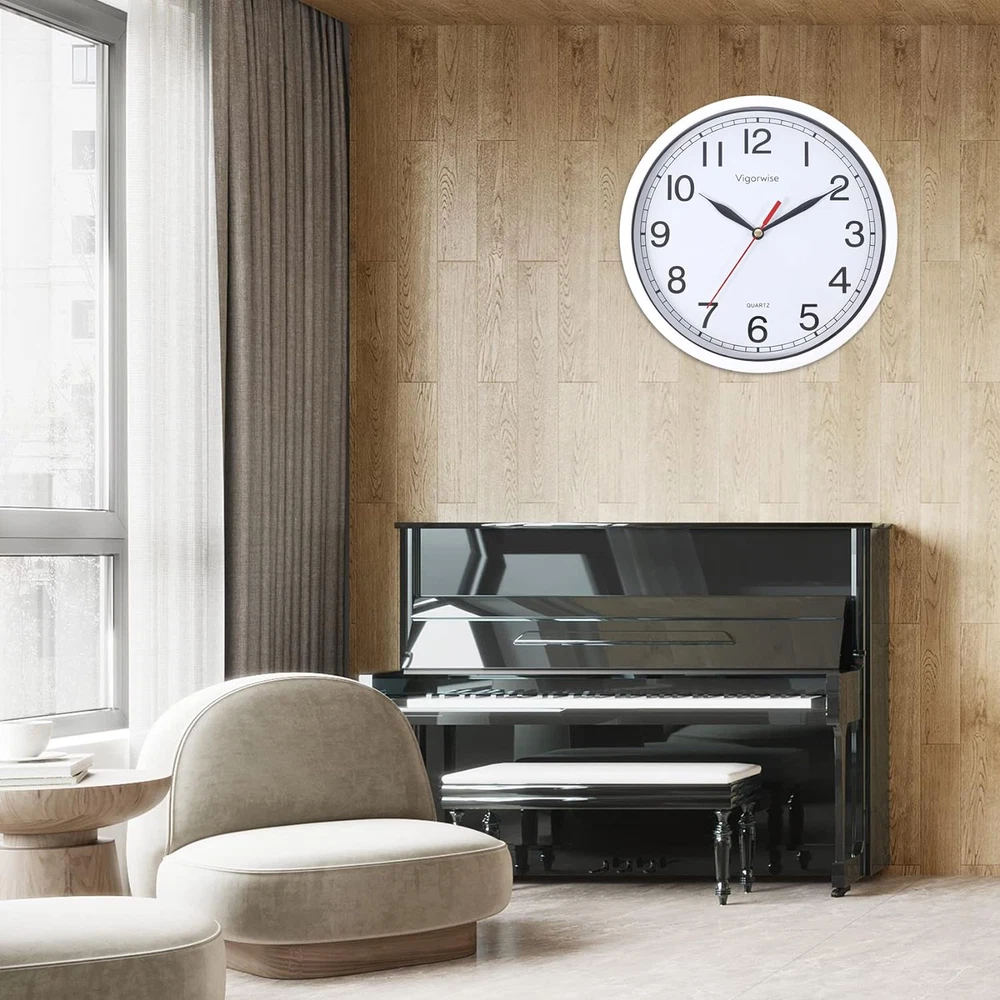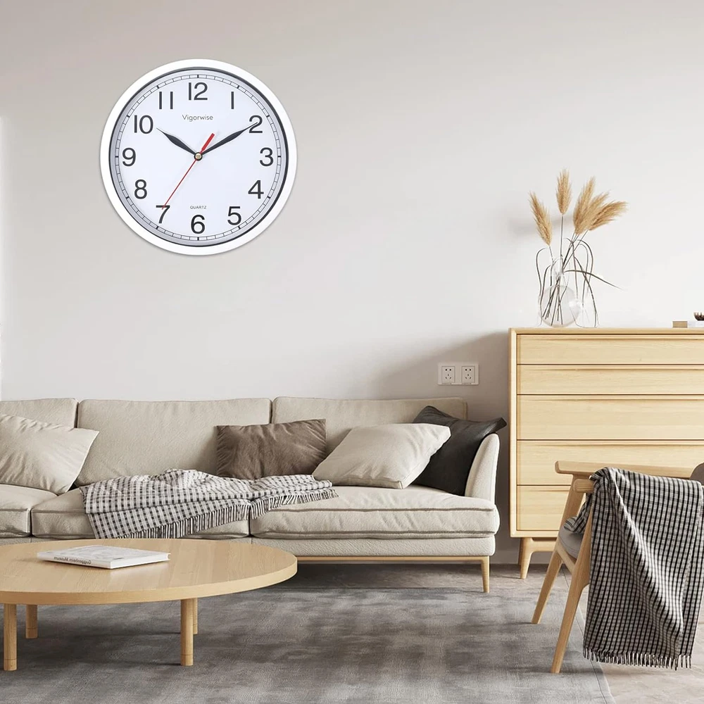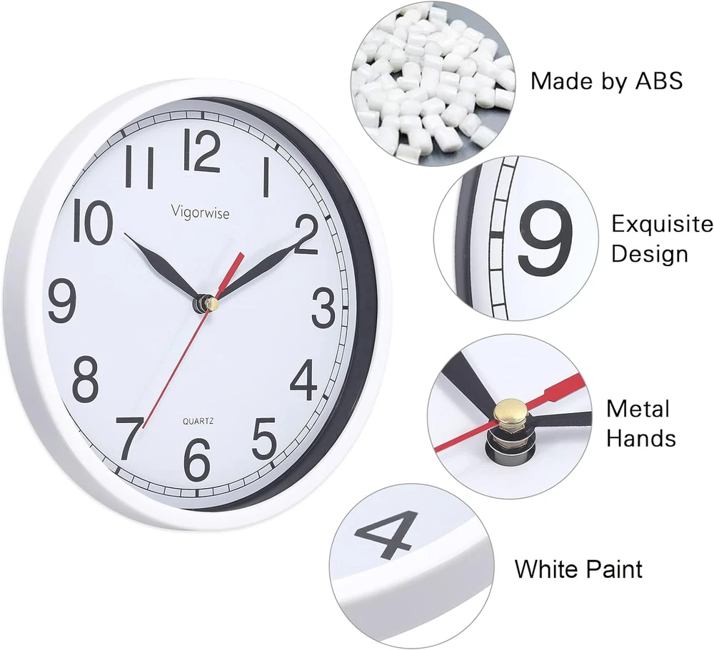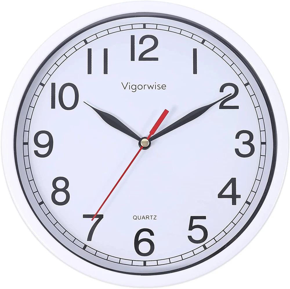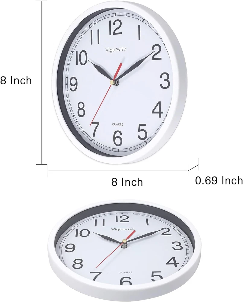 Store New Arrivals Add to Favorite View Feedback Contact Wall Clock, 8 Inch Silent Sweep Movement Accurate Small Clocks Kitchen/Living Description Item model number 8848 Style Modern Number of Items 1 Power Source Battery Powered Dial Color White Country of Origin China Operation Mode Automatic Theme Modern Are Batteries Included No Room Type Home Office Batteries required No Product Dimensions 7.87"W x 0.69"H Material Plastic Watch Movement Quartz Frame Material Glass Age Range (Description) Adult Alarm Clock Yes Manufacturer Vigorwise Indoor/Outdoor Usage Indoor Item Weight 8 ounces Special Feature Silent Clock Display Type Analog Mounting Type Wall Mount Color White No Temperature Shape Round Brand Vigorwise Size 8 inch 🕘Silent Wall Clock Battery Operated. Quartz movement and lightweight second hand makes clock sweeps in silent and guarantee the time in accuracy. Non ticking clocks ensure a good sleeping or working environment. 🕘Easy to Read. The white wall clock come with HD glass cover and big black numbers dial makes it easy to read from anywhere in the room. 🕘Beautiful & Stylish Clock. This beautiful clock is good for decor any room, such as living room/kitchen room/classroom/dining room and office. 🕘Easy to Use.A wide slot in back for easy hanging. Uses 1 "AA" battery (not included). 🕘CUSTOMER SERVICE. If you have any question about our product, please contact us in any time, we will help you solve the problem try our best. Product Description Vigorwise 8 Inch Small Wall Clock Silent Sweep Movement for Kitchen/Living Room/Bedroom/Office/School/Classroom Materials: ABS frame + Glass cover + Aluminum clock hands Size: 8" Diameter Power Source: 1 x AA battery (not included) How to use: 1. Power: Insert one AA battery. 2. Adjust the time in right place Color: White Movement : High quality silent sweep clock movement Package Included: 1 Piece of Wall Clock and beautiful clock box. High quality ABS frame The frame is made of high quality ABS material with white paint Aluminum clock hands High quality black clock hands with silent non-ticking mechanism. White clock face with clear Arabic numbers White clock face with clear Arabic numbers. You can see the time clearly from a long distance. Silent sweep quartz movement Vigorwise quartz movement is made of very thick mental coil and ABS plastic material. This structure is exquisite. ABOUT US We offer the best prices around on high quality products. Our E-store includes media such as books, movies, music and games while offering electronics, toys, sporting apparel, clothing, tools, general home, garden items and more. SHIPPING We are always working hard to ensure your package arrives as soon as possible. Please understand that some factors like weather, high postal traffic, and the performance of shipping companies are outside of our control. We offer free shipping to the lower 48 states and ship within 2 business days of payment, usually sooner. We do not accept P.O. Boxes. Please provide a physical address. RETURNS We offer a 30-Day Return Policy on items which you are not completely satisfied with. You have the option for a full-refund or an exchange of the item. No returns are available on items shipped outside of the USA. PAYMENT We accept PayPal. CONTACT US This page content is yet to come Please ad us to your favorite seller and visit again later Thank You CUSTOMER SATISFACTION We try our very best to make sure every customer is completely satisfied. If there's a problem, message us! We're happy to help.