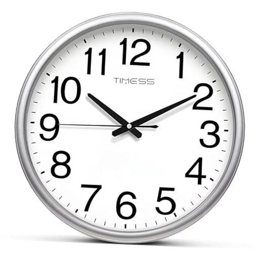 Wall Clock Large Dial Non-Ticking Silent Battery Operated 11 Inch Sliver