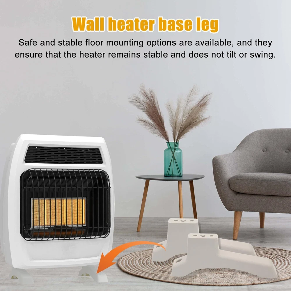Wall Heater Floor Mounting Kit, for Dyna Glo Propane Heater(2 Pack) Wall HFunctioneater Floor Mounting Kit Packing contents: 2 natural gas wall heater legs per pack; Four screws High quality materials:wall heater base is made from ABS material, offering corrosion resistance and heat resistance;extends its lifespan. Compatibility With: Wall heater legs are available for all models of Dyna Glo wall heaters and are suitable for a variety of areas such as bedrooms, living rooms, offices and study rooms; Size: 10.55""L x 2.2""W x 3.94""H. Function:Make the wall heater work stably and avoid moisture. Make the heater work better.
