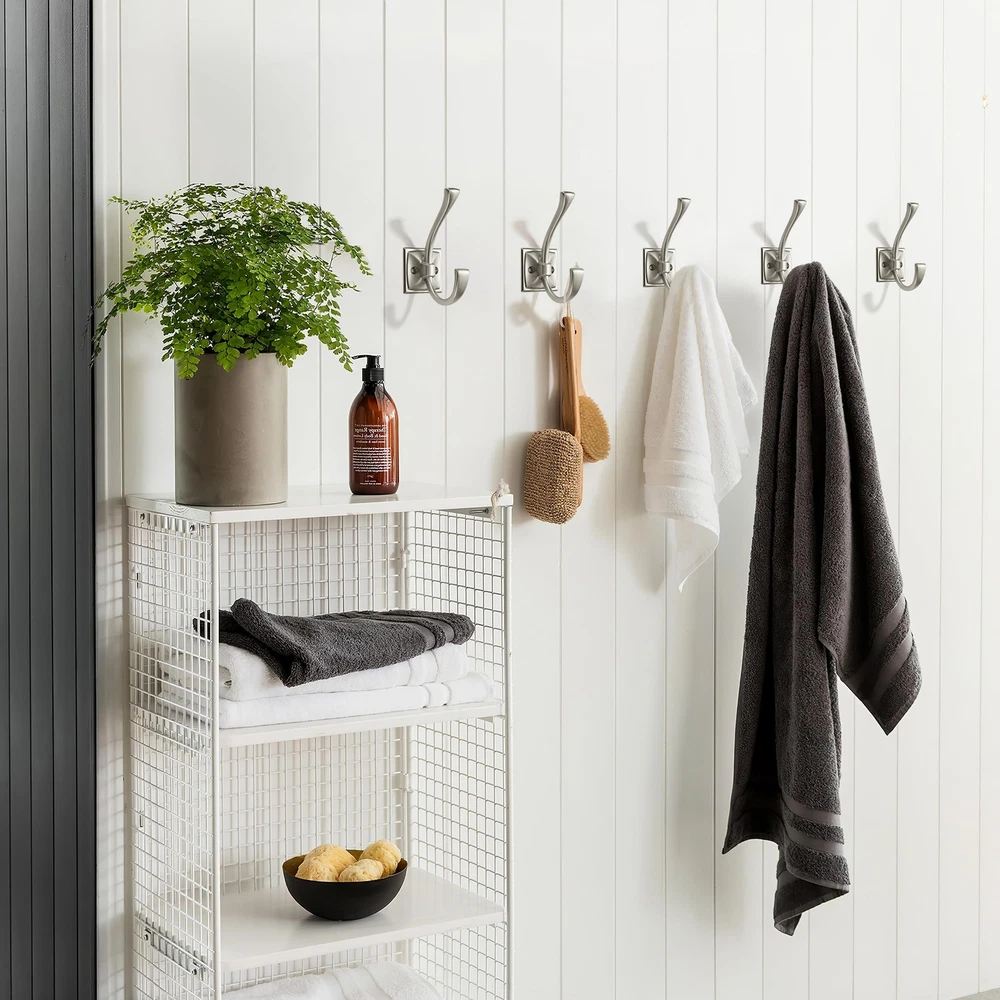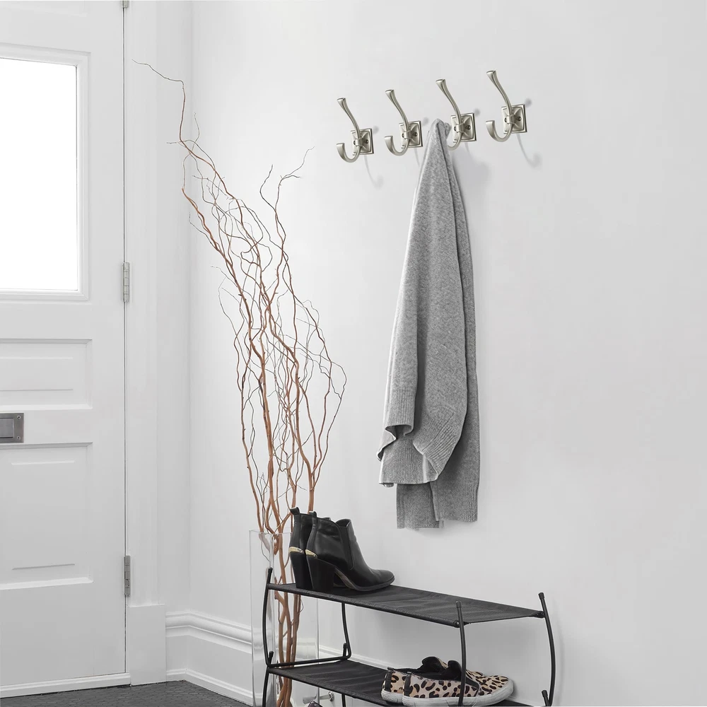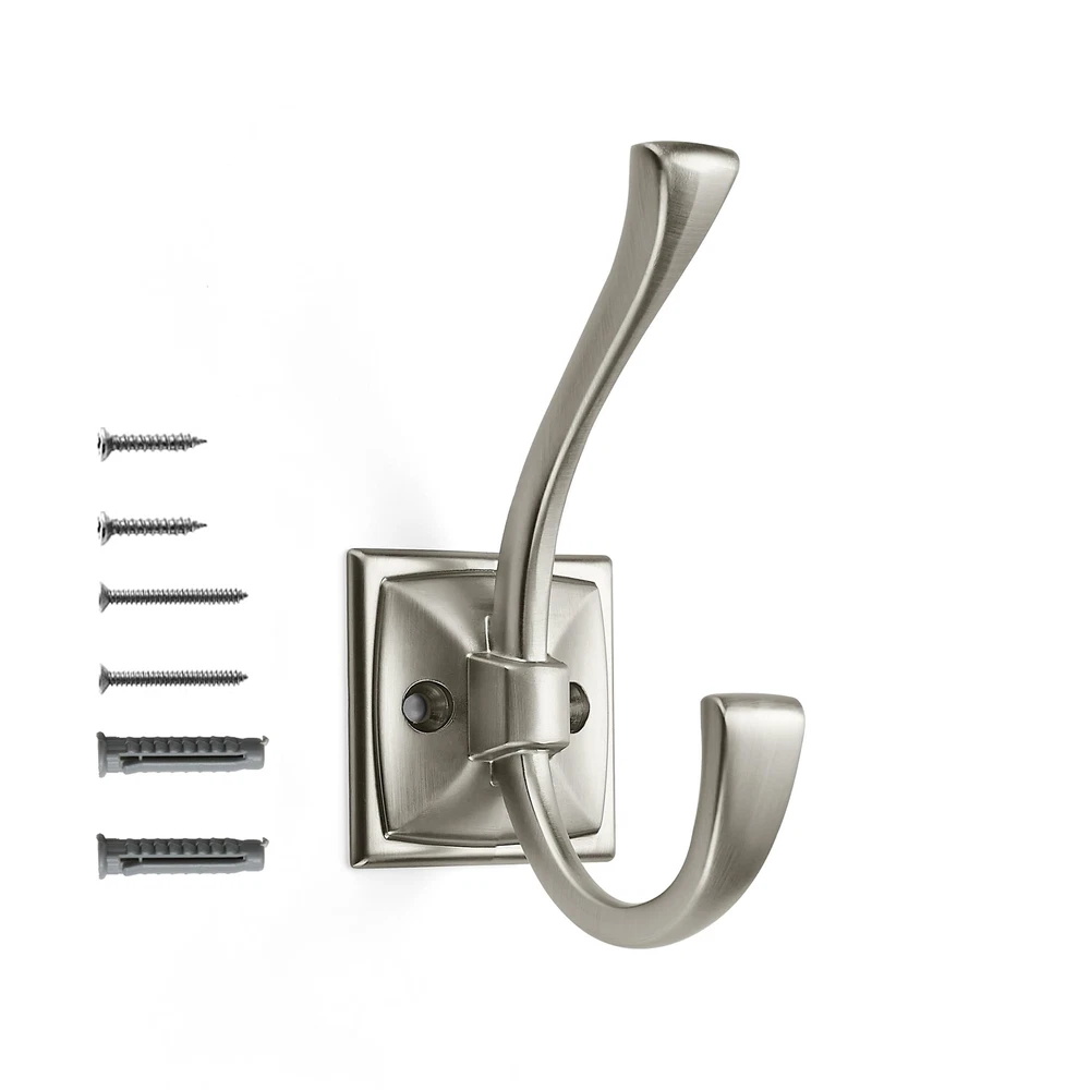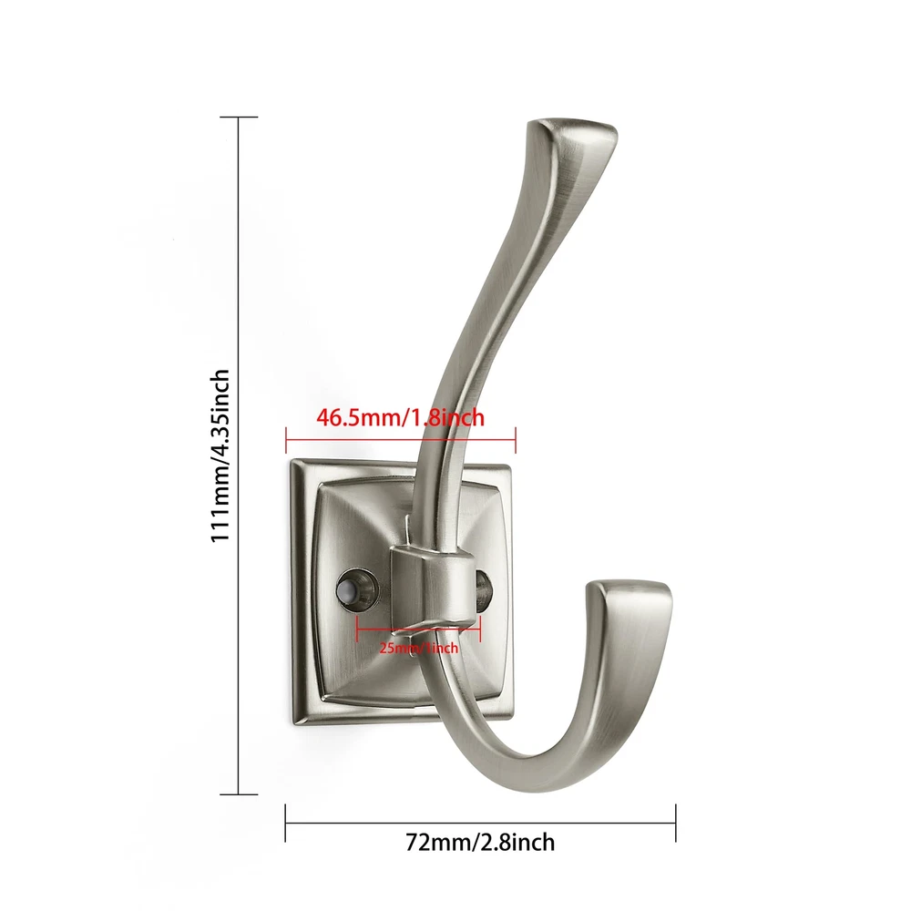 Size: Overall Length: 4.35"(111MM); Width: 1.8"(46.5MM); Height: 2.8"(73mm); Hole Spacing: 1" (25mm) Weight: 3.6oz .Please check carefully the coat you need before buying Hook size. Size: Overall Length: 4.35"(111MM); Width: 1.8"(46.5MM); Height: 2.8"(73mm); Hole Spacing: 1" (25mm) Weight: 3.6oz . Perfect for space saving - Bipolar decorative coat hooks turn empty walls into organized storage Spaces, providing a neat and appealing look in your entrance, bedroom, bathroom, hallway, and closet. They also come with easy to install hardware. High quality: Made of solid zinc alloy, durable and easy to install. It looks beautiful, feels delicate, and can easily support a weight of 60 pounds (about 27 kilograms). Wide range of applications - These versatile wall hooks can be used in any room or outbuilding to provide a practical solution for organizing your space. Brushed Satin Nickel hooks blend seamlessly with any decor, adding functionality and style. Complete mounting kit - Heavy duty hooks, 5 coat hooks, 10 flat head self-tapping screws (0.98 "(~25mm) and 10 flat head self-tapping screws 0.63" (16mm), 10 expexpable rubber plugs (1.2 "(31mm)) each hook has its own packaging, Effective protection against collisions and scratches makes installation of the farmhouse inspired wall organization quick and easy.