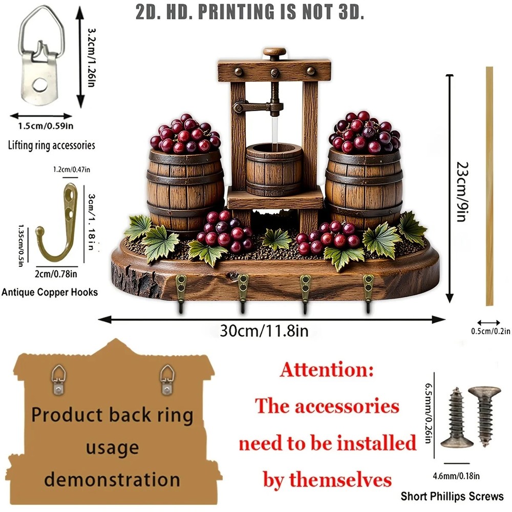 30cm Wall Keychain - Country Vintage Organizer 2D 4 Hooks Entrance