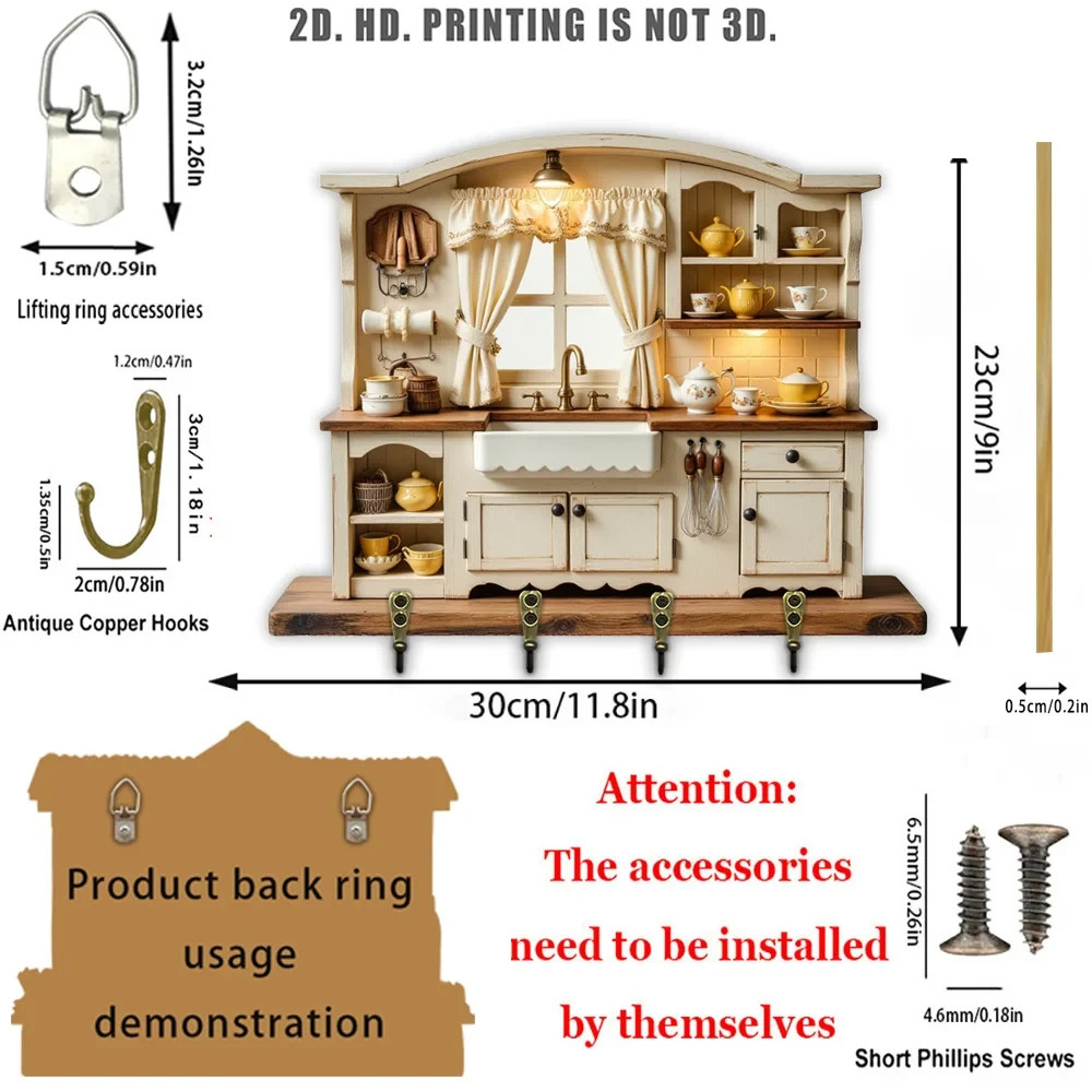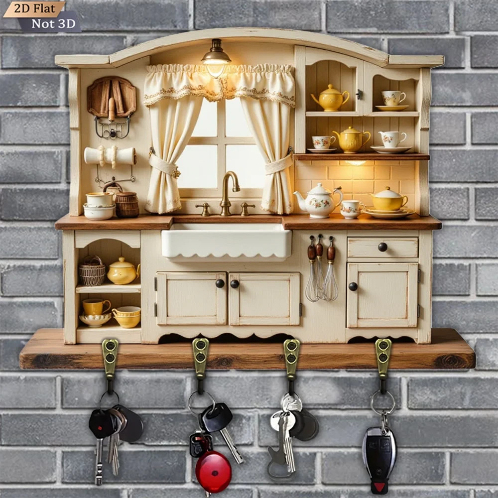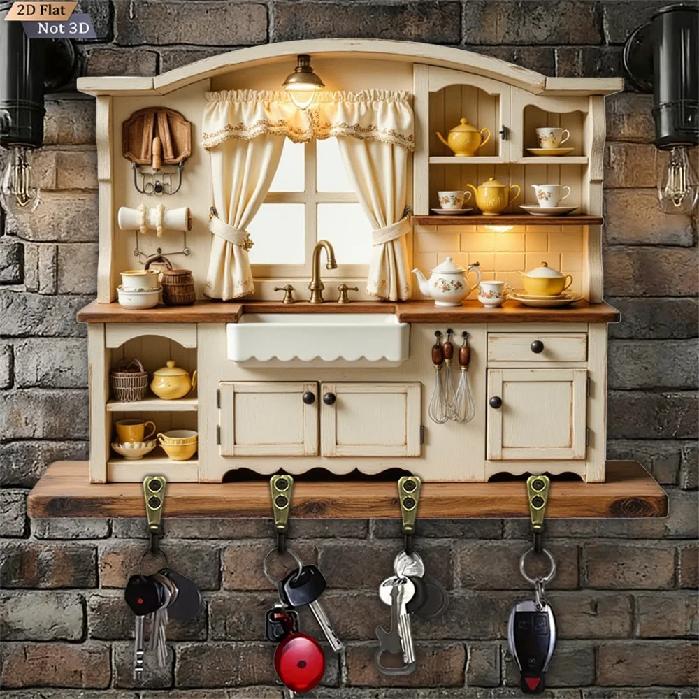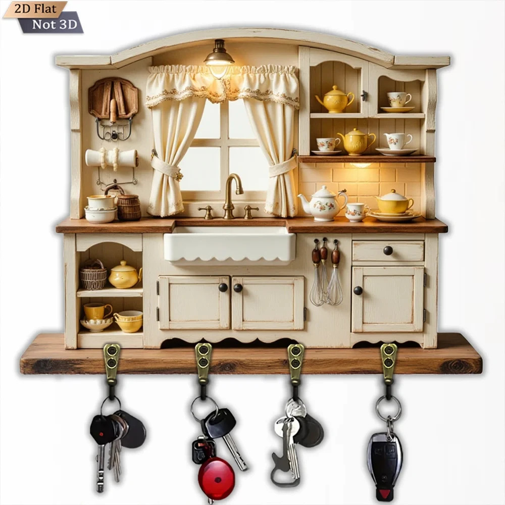 $ 15.49Wall Keychain 30cm - Elegant Coffee Shop Organizer 2D 4 Hooks Entrance