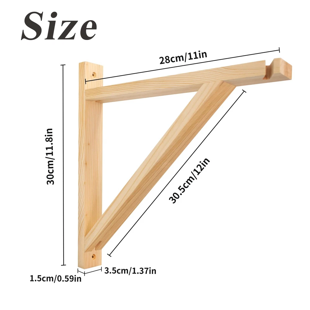 Specification Color: Wood Material: Wood Size: 300 *295*35mm/11.8*11.6*1.37in Board Length: 300 mm / 11.8 in Board Width: 35mm / 1.37 in Board Thickness: 15mm / 0.59 in Package Includes: 2 x Wall Lamp Shelf Main function: The main function is for hanging wall light. Thread the light wire through the drilled hole and the installation is complete. We provide screws and tools Simple style: The triangular light stand in log color is stable and firm. You can also tint to match your room to create a unique light stand Decoration: The wooden shelf can be used not only as a light shelf but also as a shelf, adding a piece of wood to the two wooden shelves can become a kitchen shelf, bathroom shelf, bedroom shelf and bookshelf Material: The light stand is made of high quality solid wood, which is a durable natural material. It will add modern industrial style and rustic decor, perfect for interior lighting entrances, hallways, living rooms, kitchens, dining rooms, offices and more Package includes: 2 x Wall Lamp Shelf, some accessories (Note: lights are not included)