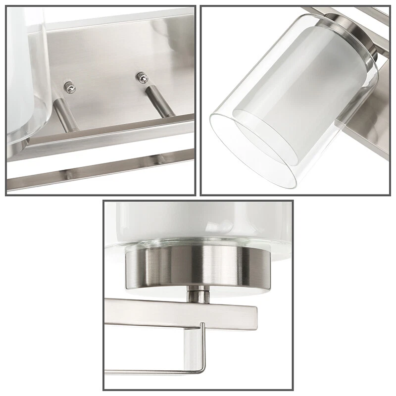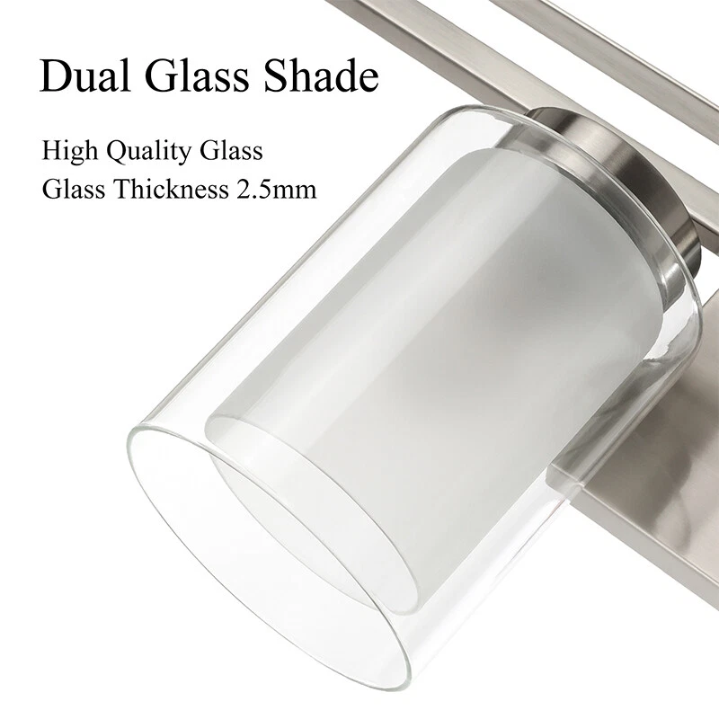 Wall Light Bathroom Vanity Lighting with Dual Glass Shade in Brushed Nickel