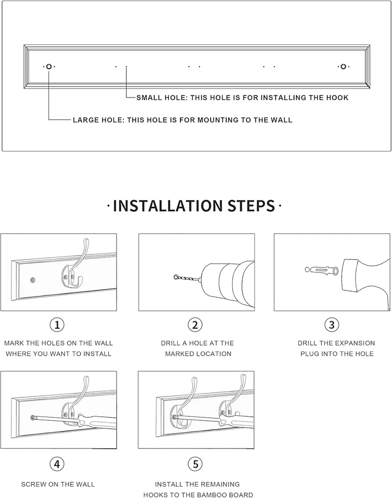 Store New Arrivals Add to Favorite View Feedback Contact Wall Mount Bamboo Coat Rack, 17 Inch 5 Double Hooks, Natural Description Weight Capacity Maximum 22 Pounds Mounting Type Wall Mount Item Dimensions 17.72 x 2.96 x 1.96 inches Color Natural Included Components Mounting Hardware Material Metal, Bamboo Material Type Metal, Bamboo Weight Supported 22 Pounds Model Number JH-HR2011-N5 Minimum Weight Capacity 22 Pounds Item Weight 0.54 Kilograms Number of Hooks 5 Shape Irregular shape Recommended Uses For Product Key Hanger, Hat, Coat Finish Types Painted Additional Features Heavy Duty Finish Type Painted Style Name Rustic Size 5 hooks(17 inch) - 1-pack [Size]17 inches long, width is about 4.3 inches, provide a big space for you to hanging items [Details]Wall-mountable coat rack with bamboo base and 5 modern double metal hooks, perfect for organization and storage of plenty items [Materials]Made of bamboo and metals, health paint, elegant qualities, natural eco-friendly materials with no smell [Easy installation]Screws and anchor come with package, providing perfect outlook and easy installation [Heavy duty]With max weight capacity of about 22 pounds, it can hold heavy stuffs and offer more hanging choices Product Description Specifications Size-Approximately 17-Inch long Width-around 2.8-Inch Material: Bamboo; Metal; Screw: stainless steel Weight: 1.02 lbs Note: please install it after you read the installation Details It’s very heavy-duty and rust-resistant. There will not be any problem for install in the bathroom, bedroom or kitchen. Function It can save so many space for you, perfect for the storage. Style Featuring a simplified European style, it’s simple but beauty and attractive. Installation First, check if the part of the rack is complete. We have 1 piece base + 5 hooks + 10 little screws + 3 large screws + 3 plastic screw anchor. Second, measure the place you want to install in, make sure you have enough room to put it. Third, put the base on the wall and keep it parallel to the ground, mark the 3 holes spacing and then drill 3 holes on the wall. Fourth, put the 3 plastic screw anchor on each hole, put on the base, drive the screws into the hole. Fifth, pick up the hook, aim at the small hole, and put the screw in. Finally, make sure all the screws are tightened and don’t shake, that will do it. ABOUT US We offer the best prices around on high quality products. Our E-store includes media such as books, movies, music and games while offering electronics, toys, sporting apparel, clothing, tools, general home, garden items and more. SHIPPING We are always working hard to ensure your package arrives as soon as possible. Please understand that some factors like weather, high postal traffic, and the performance of shipping companies are outside of our control. We offer free shipping to the lower 48 states and ship within 2 business days of payment, usually sooner. We do not accept P.O. Boxes. Please provide a physical address. For shipping outside of the continental USA, we only use eBay's Global Shipping Program.The item is shipped to KY and then sent to the rest of the world. International customers are responsible for all duties and taxes. Continue to check out in order to calculate costs for shipping the item to your country. Messages regarding eBay's Global Shipping Program MUST be directed at eBay EXCLUSIVELY. RETURNS We offer a 30-Day Return Policy on items which you are not completely satisfied with. You have the option for a full-refund or an exchange of the item. No returns are available on items shipped outside of the USA. PAYMENT We accept PayPal. CONTACT US This page content is yet to come Please ad us to your favorite seller and visit again later Thank You CUSTOMER SATISFACTION We try our very best to make sure every customer is completely satisfied. If there's a problem, message us! We're happy to help. WE ACCEPT Copyright © 2021 AutoDS. | All Rights Reserved