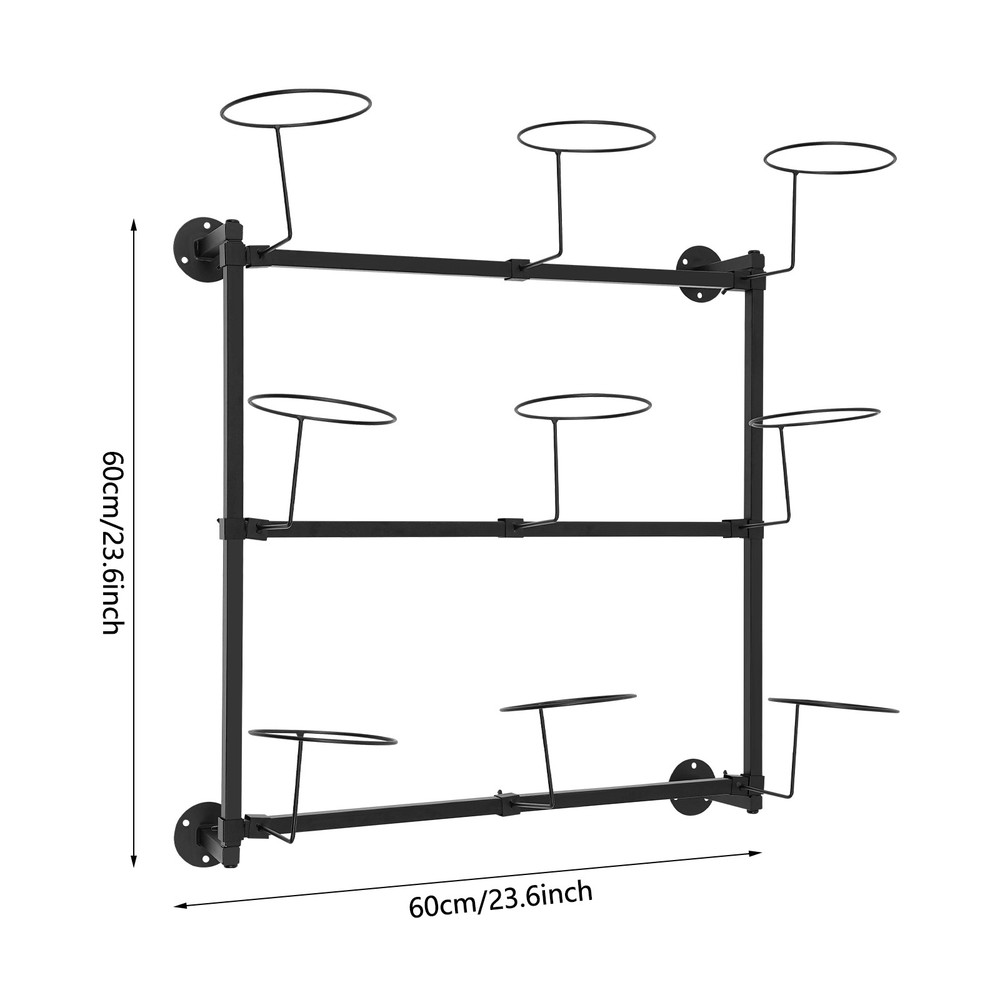 Specification Color: Black Style: Modern Material: Steel Process: High-temperature Baking Paint Installation Type: Wall Mount Assembly Required: Yes Number of Tiers: 3 Number of Hat Holders: 9 Max. Load Capacity: About 10kg/22.05 lbs Product Size: 60*60cm/23.6*23.6in Package Size: 62*15*15cm/24.41*5.91*5.91in Gross Weight: 2kg/4.41 lbs Net Weight: 1.9kg/4.19 lbs Package Included 1* Wall Mount Hat Rack 1* English Installation Diagram Other Accessories for Assembly Wall Mount Hat Rack, Hat Storage Hanger, 3-Tier Wall-Mounted Hat Display Rack Description Do you want to find a suitable way to store your hat? Let's take a look at our hat rack. It adopts a space-saving wall-mounted design, which is very suitable for small apartments or environments that require efficient use of wall space. It can not only display and store multiple hats neatly and orderly, but also add a touch of fashion to the home through its simple and modern appearance, making it an ideal storage solution for hat enthusiasts. Key Features Made to Endure: It is made of steel material, with a high-temperature baking paint process, which is sturdy, wear-resistant, rust-resistant , and not easy to deform, ensuring a long service life. Good Load-bearing Capacity: The thick material, sturdy mounting bases, and reasonable structure allow this product to effortlessly support a weight of 22.05 lbs, allowing you to place your hat with peace of mind. Flexible Use: The position of each hat holder can be appropriately adjusted, making your storage more flexible and meeting your needs for storing hats of different sizes and types. Adequate Space: The product with a 3-tier open design can accommodate 9 hats at the same time, helping you store or display various types of hats neatly and beautifully. Space Saving: This product adopts a wall-mounted installation, which can effectively utilize vacant wall space to enhance hat storage space without occupying other floor or table areas. Easy to Install: The complete accessories, pre-drilled holes on the bases, and an intuitive installation diagram add more convenience to your assembly, and you can enjoy the installation fun. Simple Clean-up: It has a smooth surface and a simple structure, so you only need to wipe the dust or stains with a towel. Buy with Confidence: We stand behind all our guests and look forward to assisting you with your purchase. It is our pleasure to answer your confusion and questions. The end of the story between us is not "we sell and you buy". Details Stable Installation Bases: They ensure firm installation on the wall and make the product more stable. Round Hat Holders: They can store and display the hats well and keep the shape of the hats without scratching them. Application This product is suitable for home cloakrooms, retail stores, clothing stores, shopping malls, etc. to display and store various types of hats, such as baseball caps, Panama hats, top hats, cowboy hats, and golf caps. Specification Color: Black Style: Modern Material: Steel Process: High-temperature Baking Paint Installation Type: Wall Mount Assembly Required: Yes Number of Tiers: 3 Number of Hat Holders: 9 Max. Load Capacity: About 10kg/22.05 lbs Product Size: 60*60cm/23.6*23.6in Package Size: 62*15*15cm/24.41*5.91*5.91in Gross Weight: 2kg/4.41 lbs Net Weight: 1.9kg/4.19 lbs Package Included 1* Wall Mount Hat Rack 1* English Installation Diagram Other Accessories for Assembly Notes Please check the size carefully before ordering. Please note that the hats shown in the picture are not included in the package. Please use the product within its weight capacity to avoid damage. Please allow the slight color difference caused by the shooting light and the 1-3 cm error due to manual measurement, and make sure you do not mind before ordering. Payment Delivery details Terms of sales About us Contact us Payment We accept ebay payment 。 Fees such as import duties, taxes are not included in the item price or shipping costs. These charges are the buyer's responsibility. Delivery details Shipping: 2-9 working days to: USA Terms of sales We maintain high standards of excellence and strive for hundred percent customer satisfaction. Feedback is very important to us. We hope that you contact us immediately before you give neutral or negative feedback, so that we can address your concerns. It is impossible to address issues if we do not know about them! About us Your satis faction is our ultimate goal. We work hard to earn your trust and future business. Our certified technicians have tested each item before shipping. The unit comes with 1 year limited warranty on all manufacturing defects. a) If you receive a defective item, you may return it or ask for a discount. Please contact us within 14 days after you receive the package. b) What you returned must be intact and in its original packaging as re? u. Customer is responsible for shipping costs of the returned item. c) We will cover the cost of shipping back t with the shipping rate indicated in the registration page. We will send you a new unit or refund the full payment you paid. Thank you. Contact us Business Hour Business Hour: Monday To Friday: 8:30 AM to 5:00 PM (Beijing China time) Due to time zones, our reply to your questions may not be immediately. But within above working time, we will reply your email within 24 hours. If it's non-workdays, please kindly be patient and wait till Monday. Please contact us with ebay message. Please feel free to contact us if you have any questions. Monday To Friday: 8:30 AM to 5:00 PM (Beijing China time) Due to time zones, our reply to your questions may not be immediately. But within above working time, we will reply your email within 24 hours. If it's non-workdays, please kindly be patient and wait till Monday. Please contact us with ebay message. Please feel free to contact us if you have any questions. *Festure 1 Compact Design,Unique Appearance Feature^ High Quality with Warranty Service If you have any question